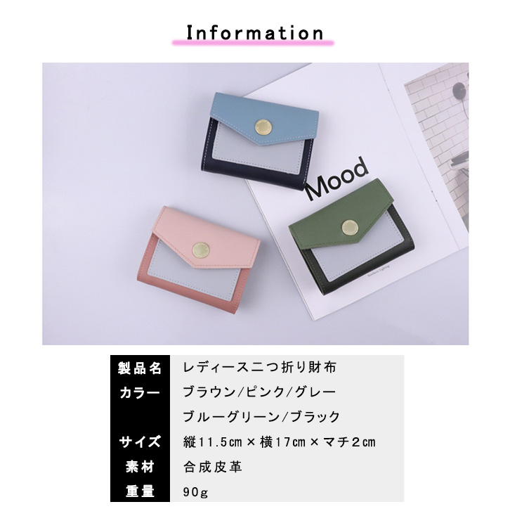レディース財布 二つ折り財布 財布 ウォレット コンパクト 持ち運び便利 ボタン式 収納力抜群 お札入れ小銭入れ一体型 カラー豊富 全6色 カラバリ豊富 持ち運び便利 使いやすい