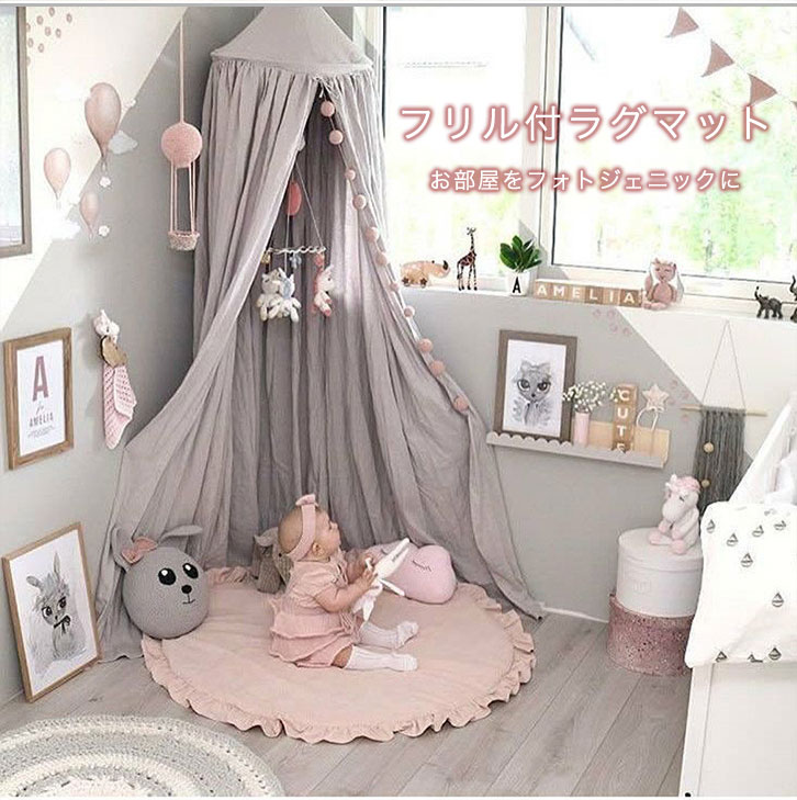 フリルマット ラグマットラグ 子供 ベビー フリル レース カーペット ラグ ピンク 丸 円形 モノトーン姫 子供部屋 北欧 キッズ ベビー 出産祝い 綿 サニーマット おしゃれ 赤ちゃん ベビーマット お昼寝 レース 可愛い お洒落 インスタ映え