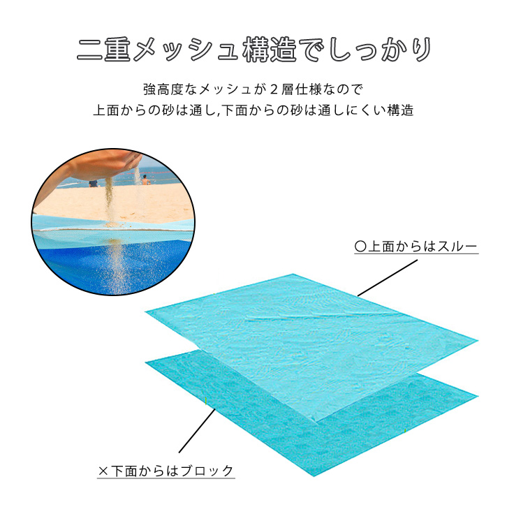 ビーチシート レジャーシート シート 二重メッシュ構造 2層 ストレスフリー 砂が消える アウトドア 運動会 キャンプ ピクニック 全3色 ピンク ブルー グリーン メッシュ素材