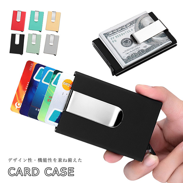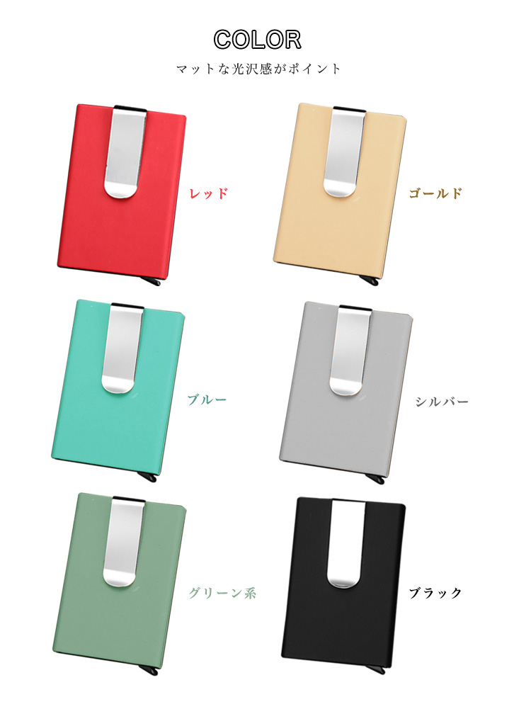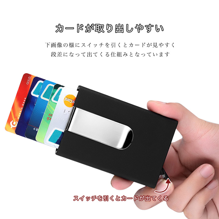 カードケース マネークリップ スイッチでカードが出てくる スイッチ式 スタイリッシュ オシャレ 機能的 強度 丁度いい収納力 落下防止グリップ マット感 カラー豊富 全6色 レッド ゴールド シルバー ブラック