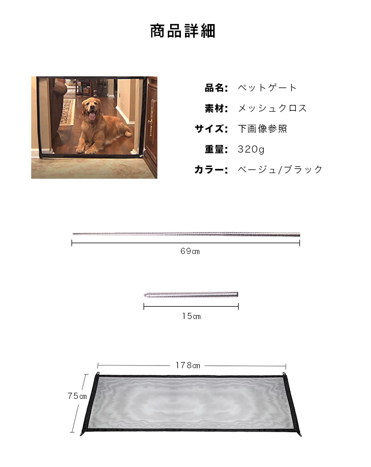 犬用ゲート ペットゲード ペット ゲード ペットフェンス とおせんぼ メッシュ 簡単 コンパクト 収納 シンプルデザイン 便利 持ち運び ワイド ペットゲージ