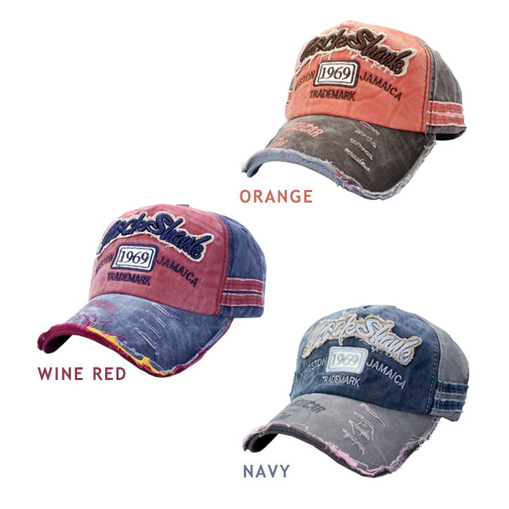 【カラー】グレー/ディープグリーン/グリーン/オレンジ ワインレッド/ネイビー 【サイズ】約54~58cm(調整可) 【素材】綿 ビンテージライクなダメージ感がシブい!! カジュアルからアメカジ、ストリート系など幅広いスタイルにハマるので大人気!コーディネートのアクセントにも重宝するアイテムです。 【問い合わせ商品コード】 aqua-ko-shi-042