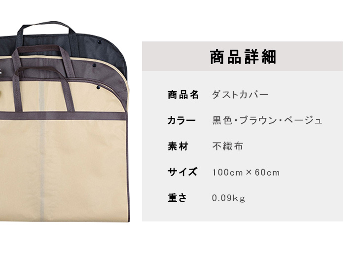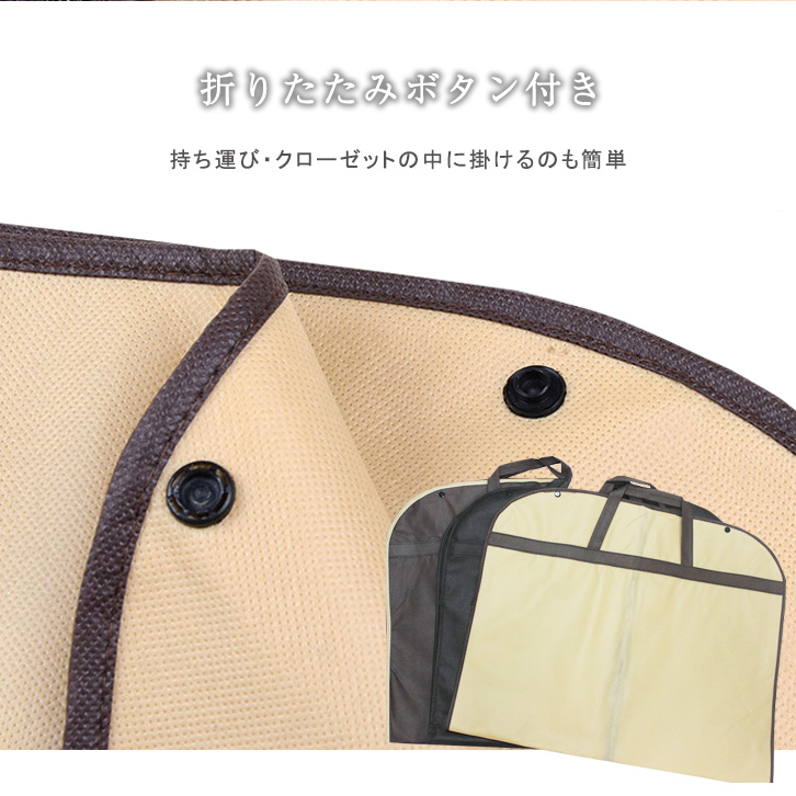 スーツカバー ガーメントバッグ ダストカバー 持ち運び便利 ホコリ防止 カビ防止 抗菌 シワ防止 良質な不織布 ジッパー開閉 服を傷つけない 折りたたみボタン付き 省スペース収納 全3タイプ