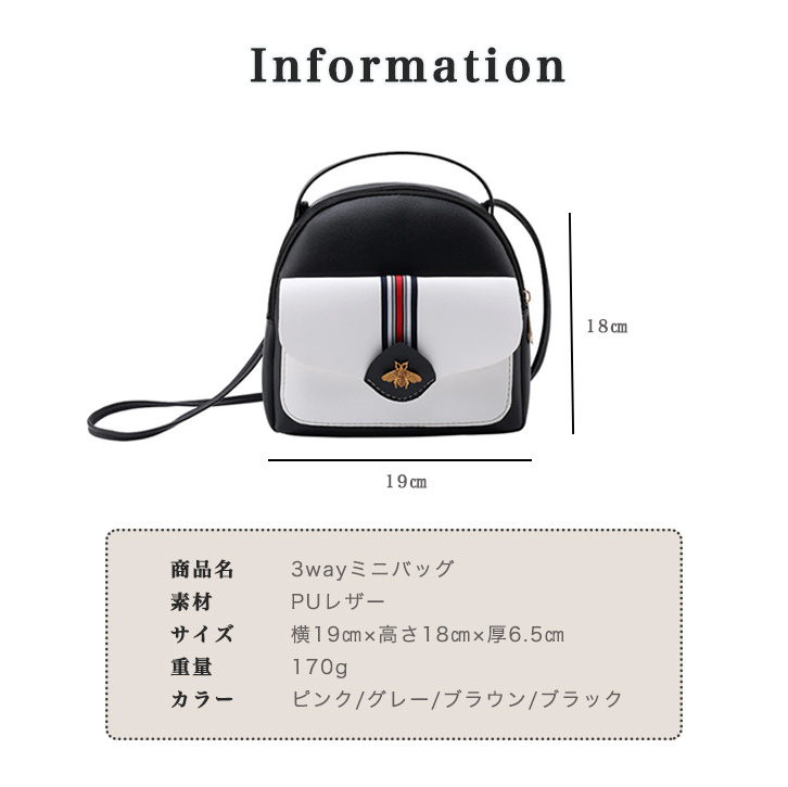 ミニバッグ 3wayバッグ ハンドバッグ ショルダーバッグ ショルダーリュック ミニサイズ コンパクト マチあり 収納力抜群 ファスナータイプ 外ポケット付き マグネットポケット付き オシャレ