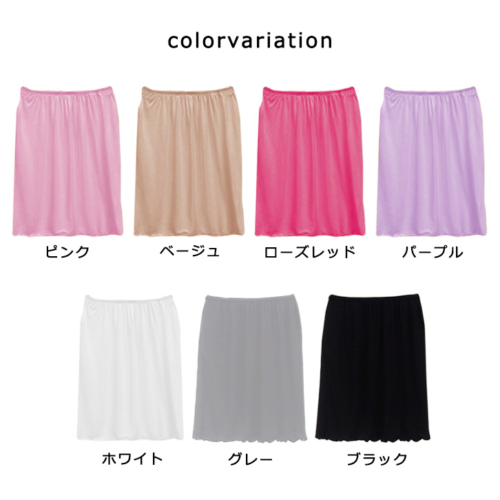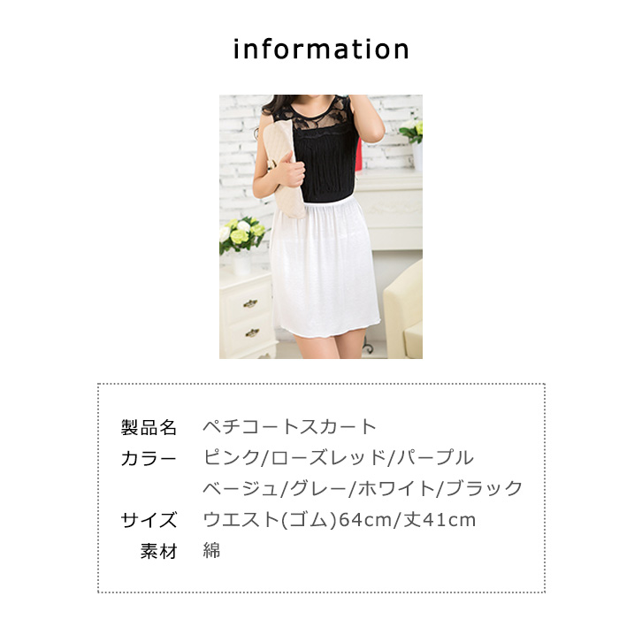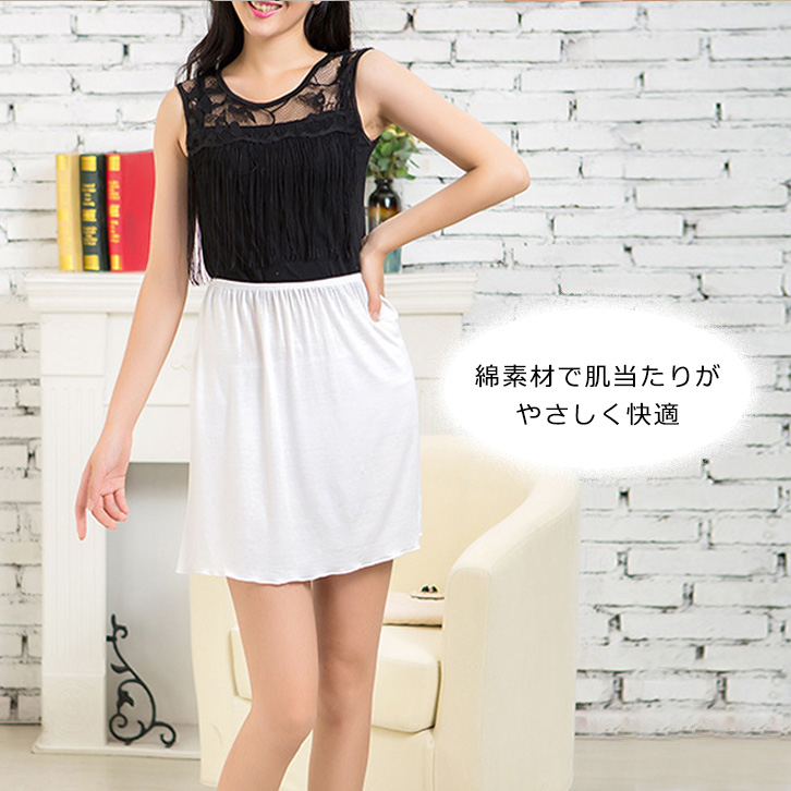 スカート ペチコート 綿素材 肌触り抜群 ウエストゴム 履き心地楽々 シンプル カラー豊富 下着透け防止 カラー豊富 全7カラー カラバリ豊富 ワンサイズ カラーバリエーション 7色展開