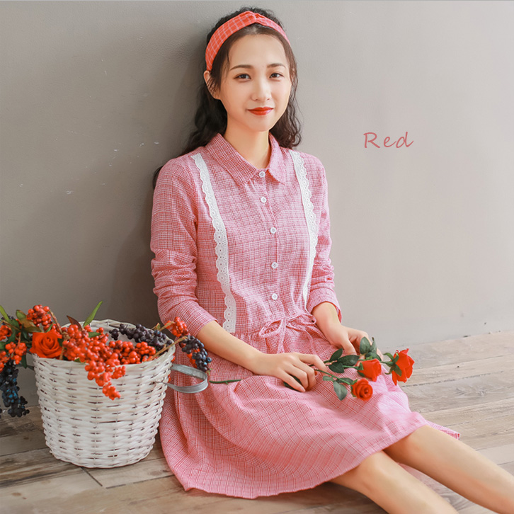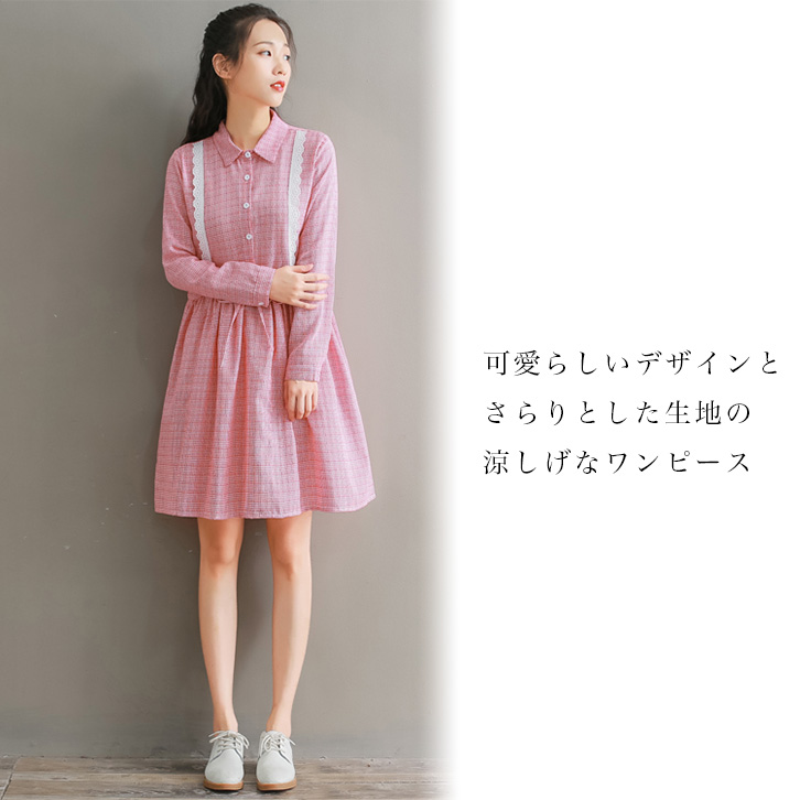 ワンピース レディース シャツワンピース チェック柄 レッド ブルー お洒落 可愛い 女性 涼しい 夏