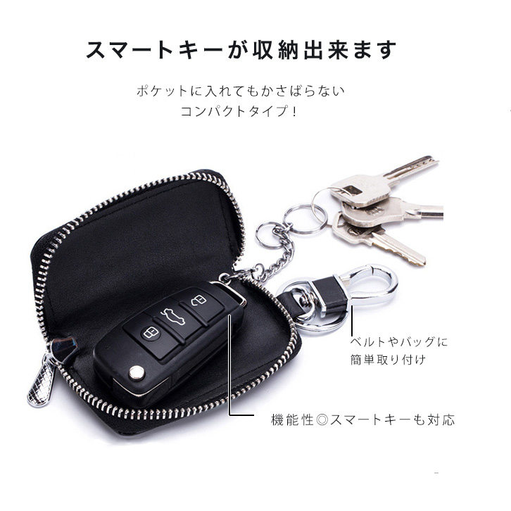 キーケース スマートキーケース 本革キーケース スマートキー収納可能 ジッパータイプ 本革 高級感 牛革 おしゃれ かっこいい プレゼント ギフト カラー豊富 カラーバリエーション 全6色