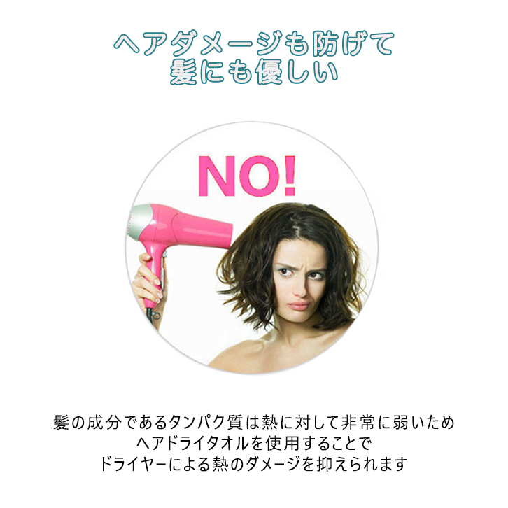 ヘアドライタオルを使用することによりドライヤーの熱による髪への影響を抑えられます!
