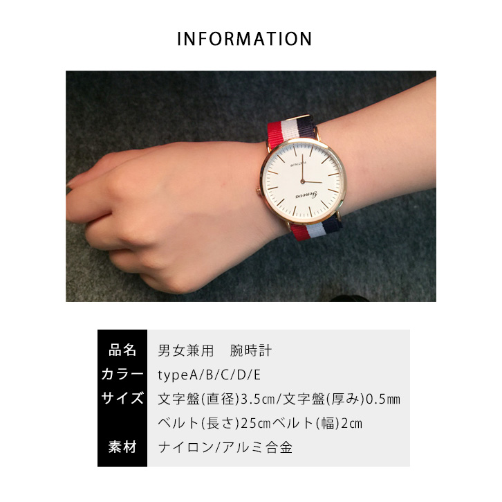 腕時計 ウォッチ 時計 ナイロン ベルト レディース メンズ ユニセックス ストラップ カジュアル プチプラ プレセント ギフト おすすめ お洒落 可愛い 男女兼用 シンプル 合わせやすい 人気