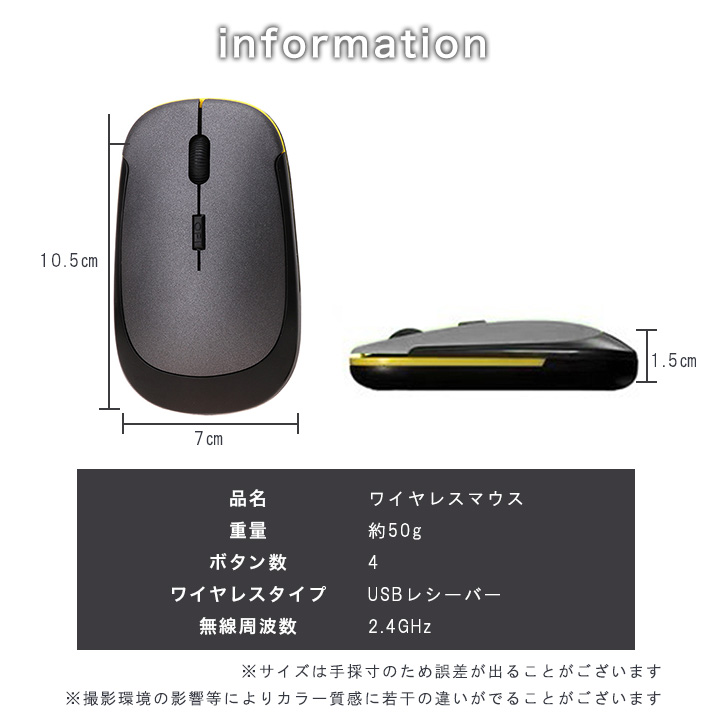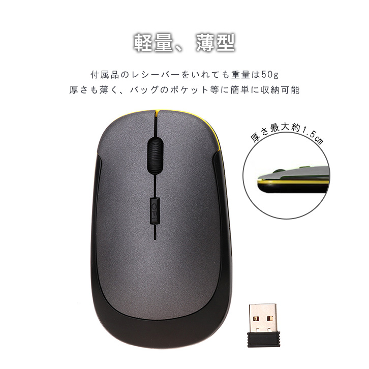 ワイヤレスマウス 超薄型 軽量 マウス コンパクト USB 光学式 4ボタン 2.4G 便利 お洒落 疲れにくい フィット感