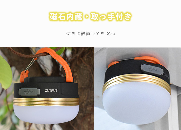 ミニランタン ミニランプ LEDランプ コンパクト ミニサイズ USB充電 モバイルバッテリー機能 持ち運びラクラク キャンプ ウォーキング 磁石内蔵 非常用 半透明ランプカバー 3段階調光 取っ手付き