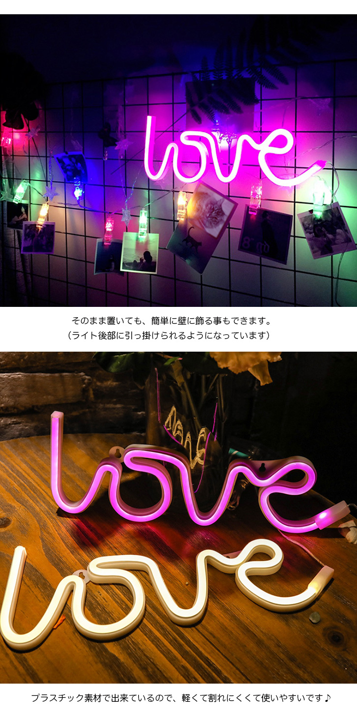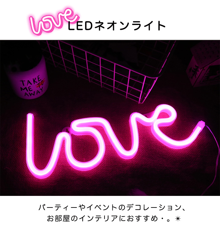 LEDネオンライト ライト ネオンライト インテリアライト LOVE iove LED ピンク クリームイエロー アメリカン雑貨 パーティー イベント 雑貨 可愛い お洒落 デコレーション おすすめ