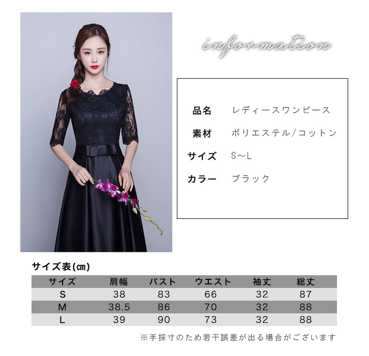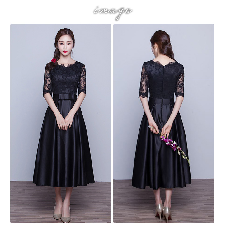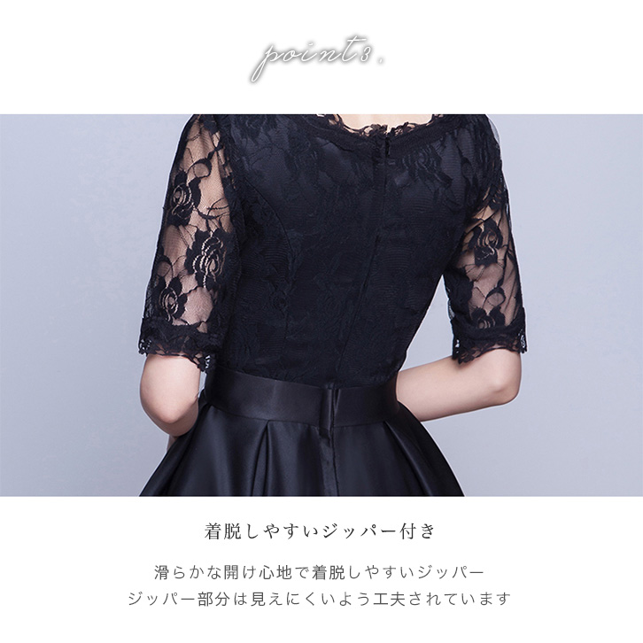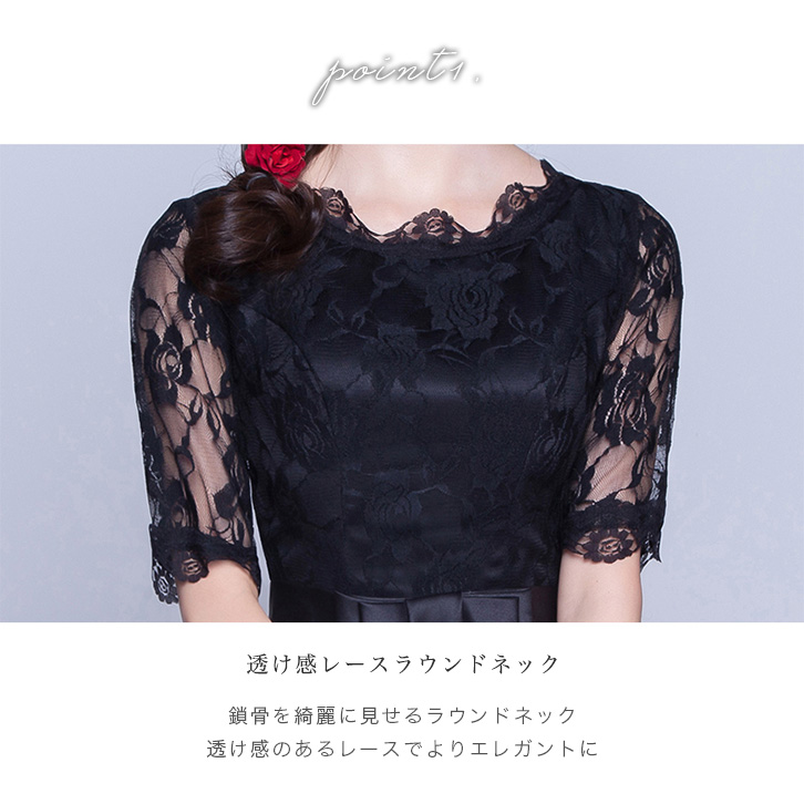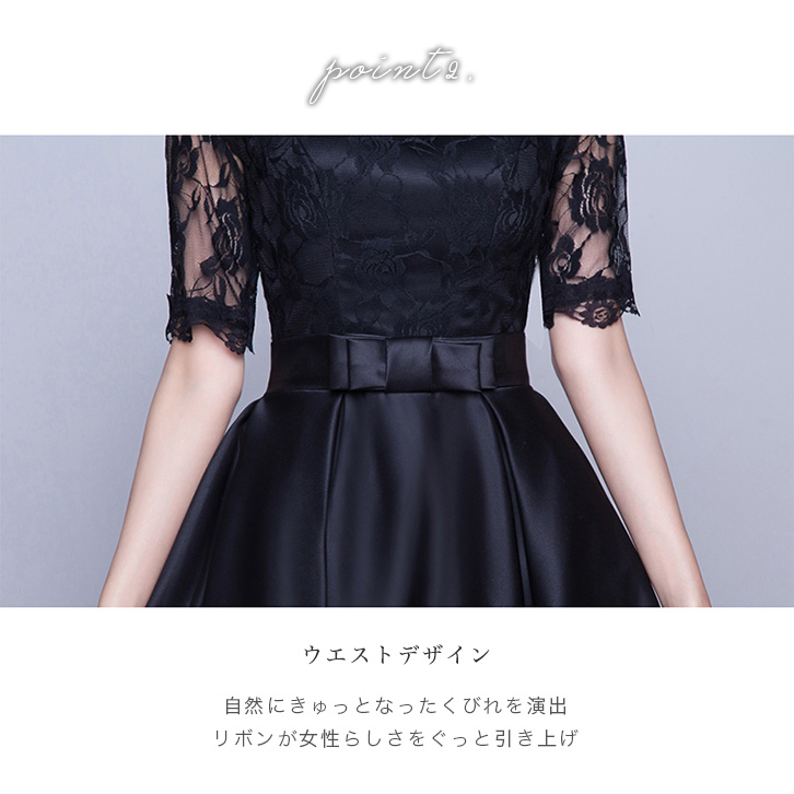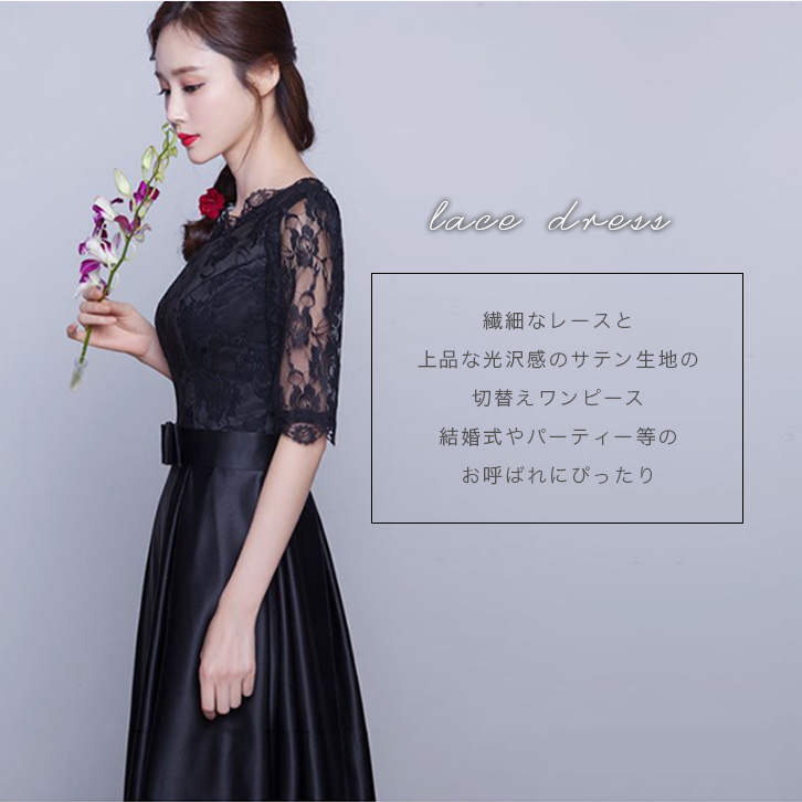 エレガントドレス ドレス ドレスワンピース ワンピース ドレス ショート丈 ひざ上ドレス 短め 黒 ブラック パーティドレス 上品な 黒 ワンピース レース パーティードレス 5分袖ワンピース 結婚式 エレガント 二次会 お呼ばれ 演出 司会
