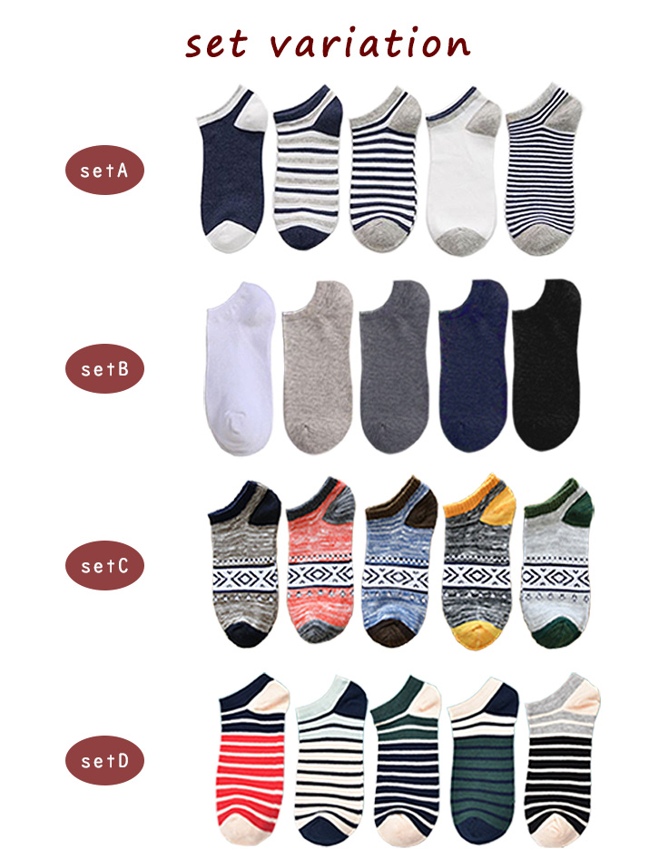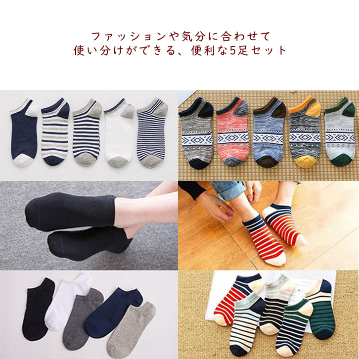 ソックス メンズソックス くるぶしソックス 靴下 メンズ メンズ靴下 無地 ボーダー アジアン柄 オシャレ エスニック柄 シンプル 柄 5足組 全4タイプ バリエーション豊富 カジュアル オフィス