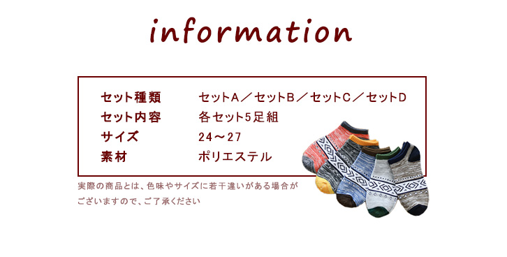 【セット内容】各セット5足組