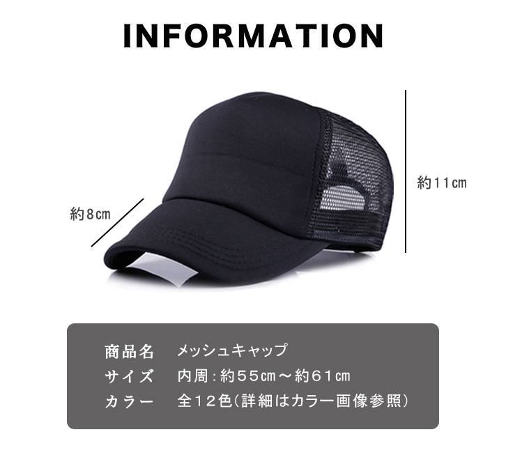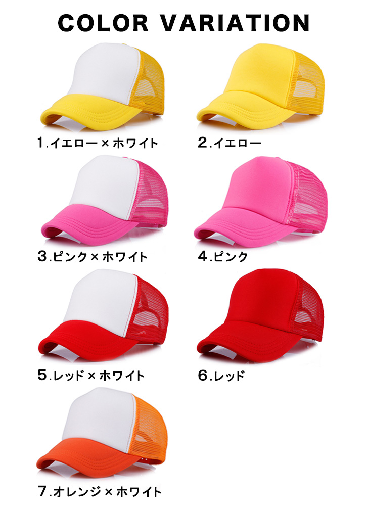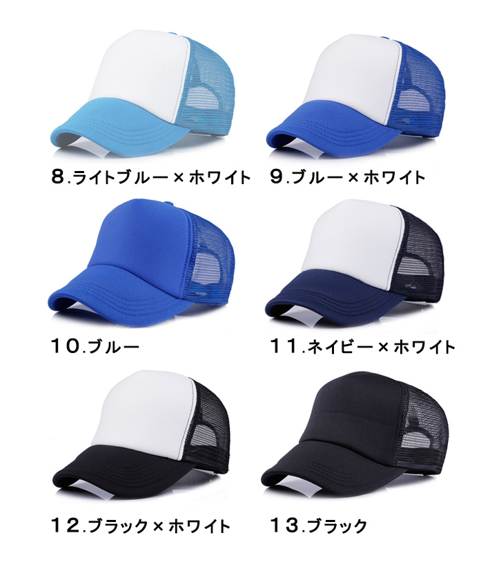 キャップ 帽子 メッシュキャップ メッシュ シンプル ワンカラー ツートンカラー バイカラー 合わせやすい 無地 カラー豊富 カラバリ豊富 通気性抜群 メッシュ素材 サイズ調節可能 7段階