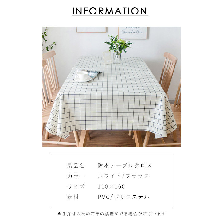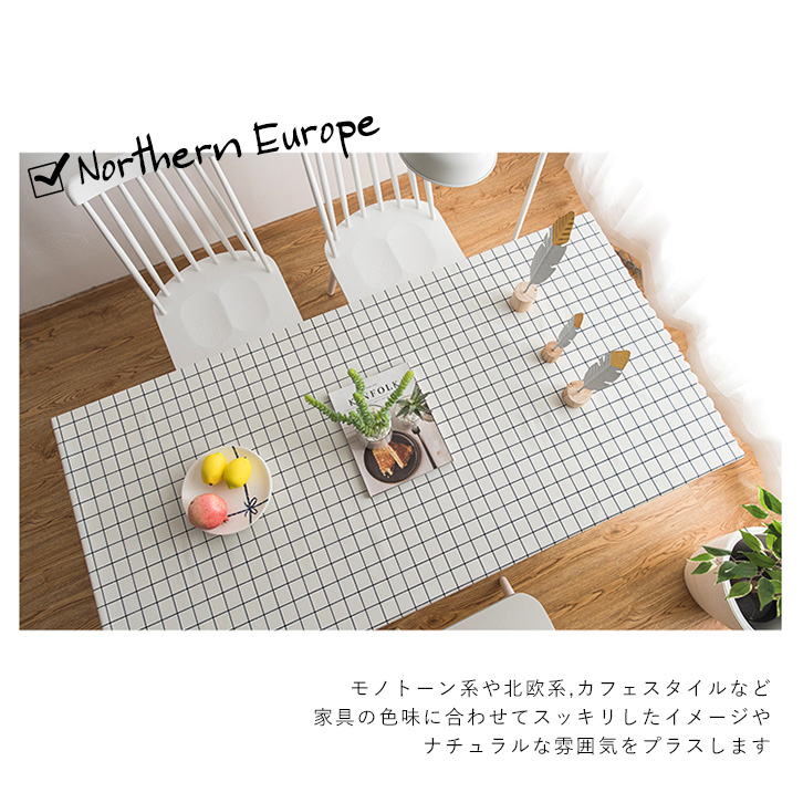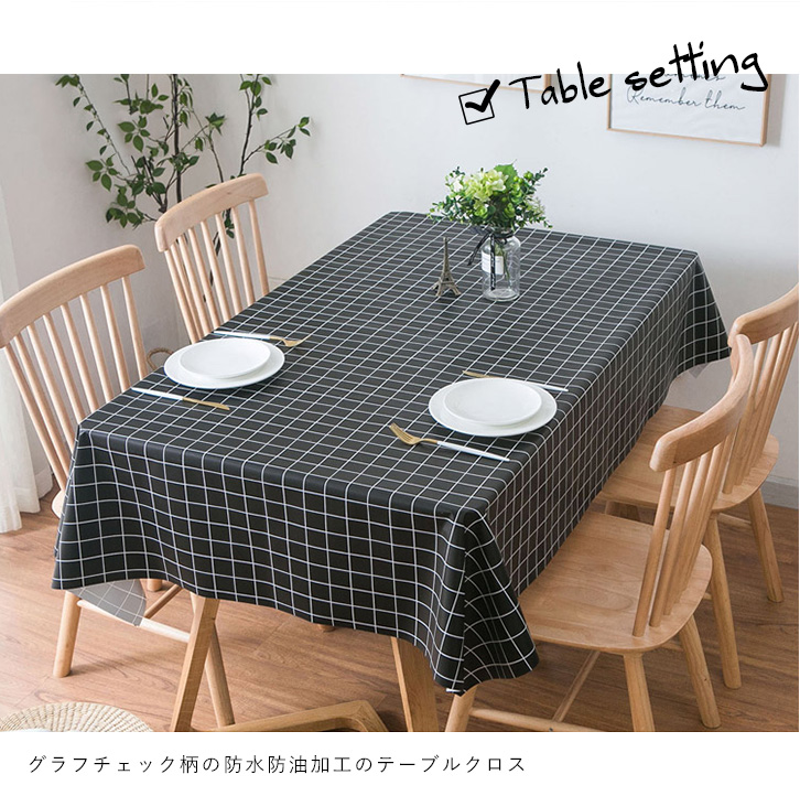 テーブルクロス クロス Sサイズ グラフチェック柄 モノトーン 防水 防油 シンプル 北欧系 カフェスタイル ナチュラル エンボス加工 丈夫 お手入れ簡単 ホワイト ブラック インテリア おしゃれ