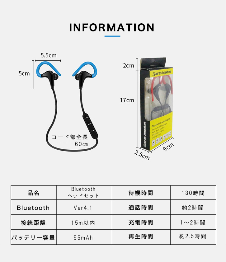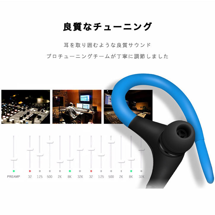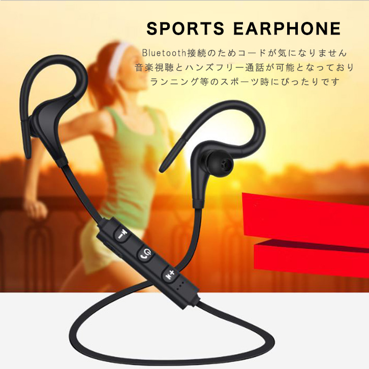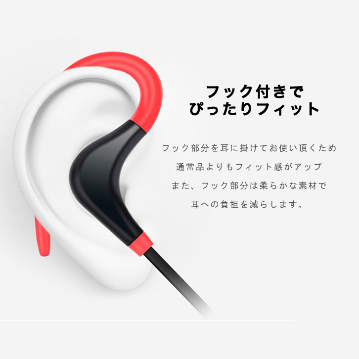 スポーツイヤホン Bluetooth接続 フック付イヤホン イヤーフック フィット感 音楽視聴 ハンズフリー通話 ヘッドセット