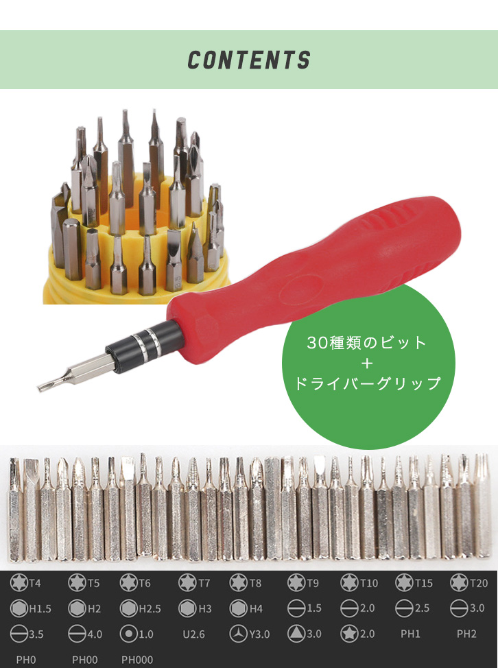 【セット内容】ケース/グリップ/ビット30種