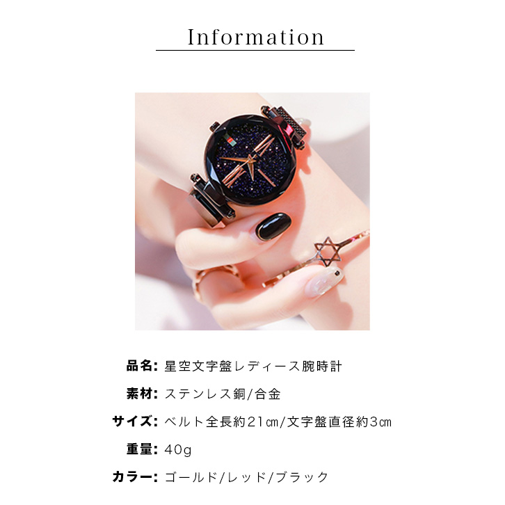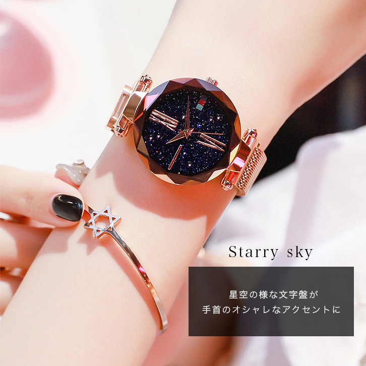 腕時計 レディース 星空 レディースウォッチ マグネット 磁石式メッシュメルト カジュアル フォーマル おしゃれ ブレスレット クリスマス 母の日 ギフト プレゼント インスタ映え