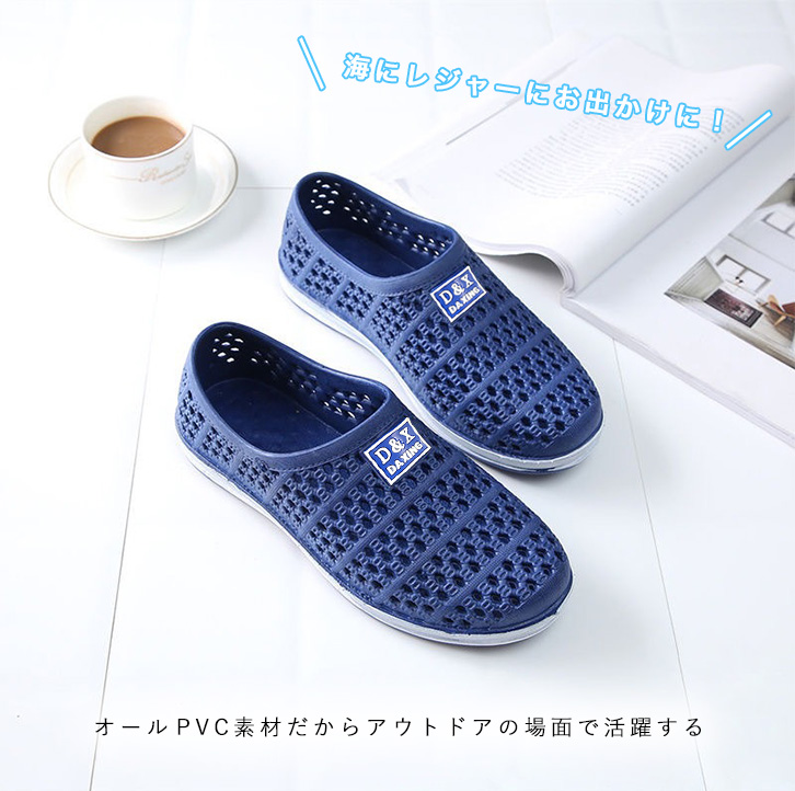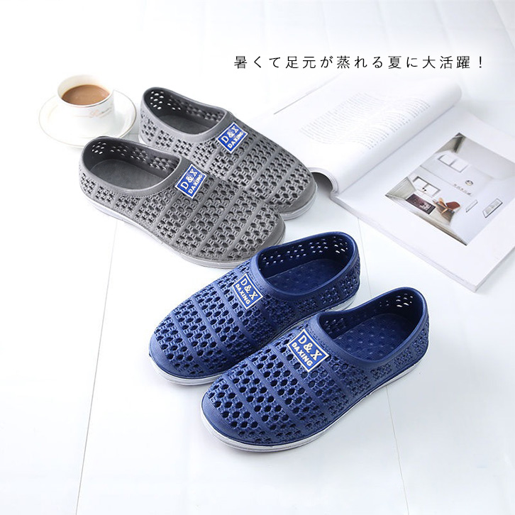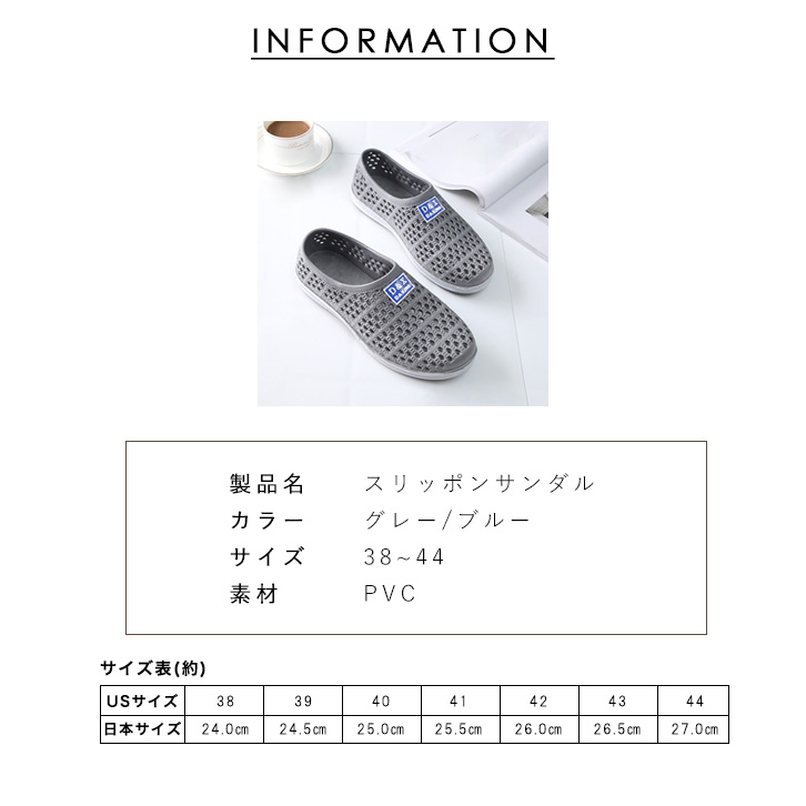 スリッポンサンダル スリッポン サンダル グレー ブルー ベランダ 海 プール メンズサンダル アウトドア デイリー使い 脚ムレ防止 メッシュ仕様 通気性抜群 ワンポイントロゴ シンプル 全2色