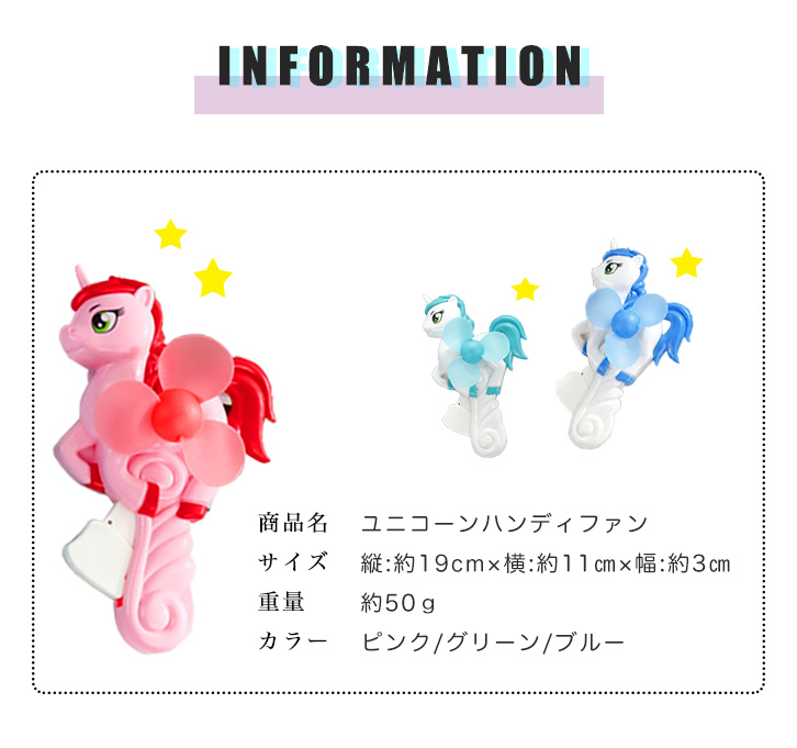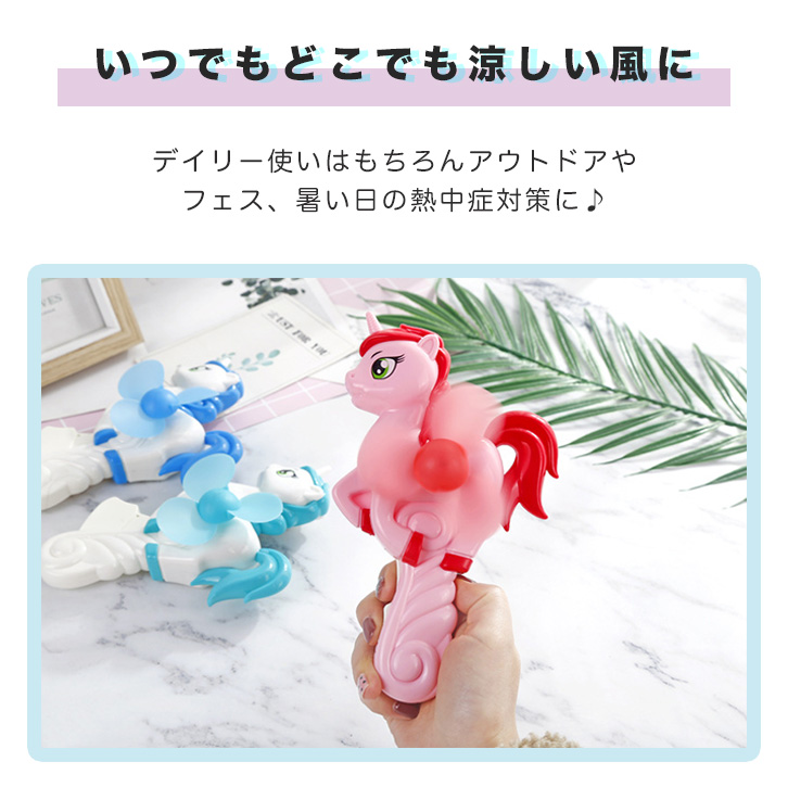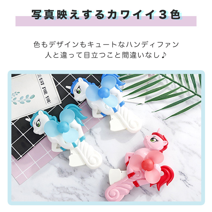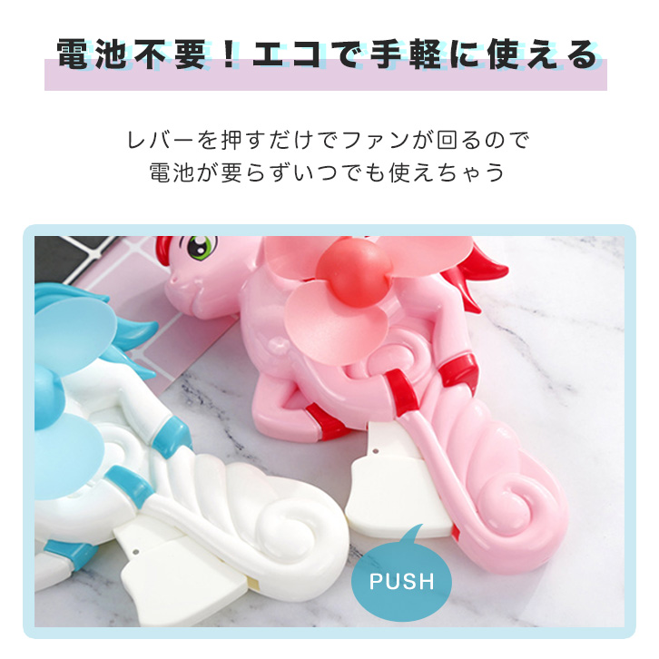 ハンディファン ユニコーン ミニ扇風機 ミニファン 電池不要 SNS映え かわいい キュート レバー式 エコ ソフト羽根 暑さ対策 熱中症対策 デイリー使い アウトドア フェス 野外ライブ 全3色