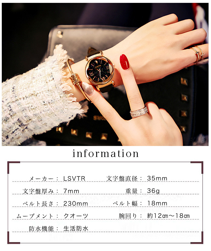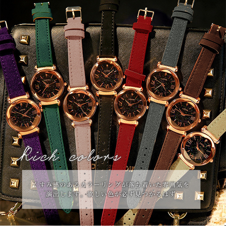 腕時計 ウォッチ 星空 ラメ入り文字盤 キラキラ きれい おしゃれ かわいい ベルトカラー豊富 高級感溢れる ジュエリー 7段階調節可能ベルト カラーバリエーション豊富 全8カラー 大人可愛い