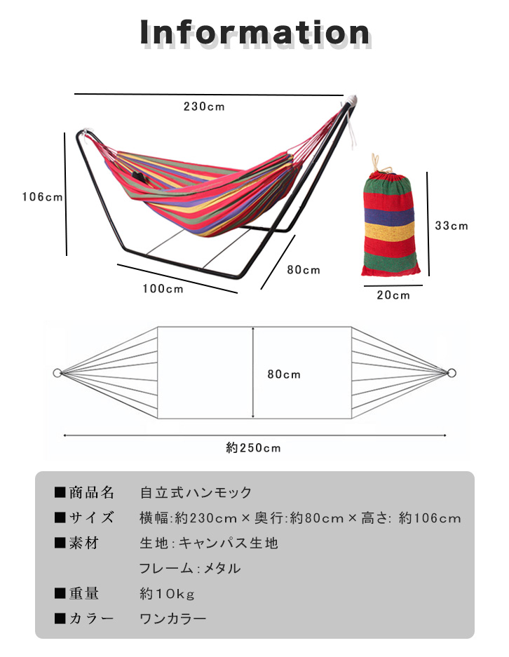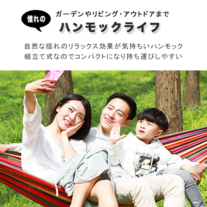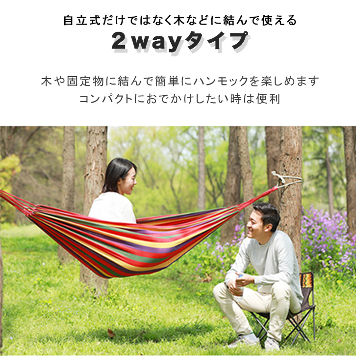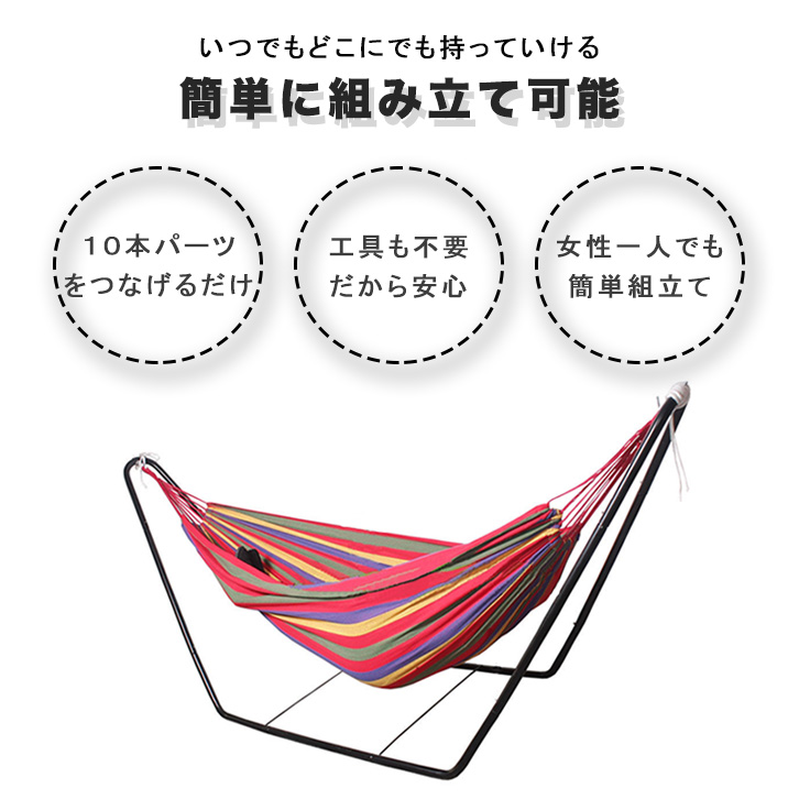 ハンモック 自立式ハンモック 組み立て式 持ち運びラクラク アウトドア ガーデン リビング 組み立て簡単 工具不要 キャンプ お庭 2wayタイプ 寝心地抜群 強化スリング 収納袋付き
