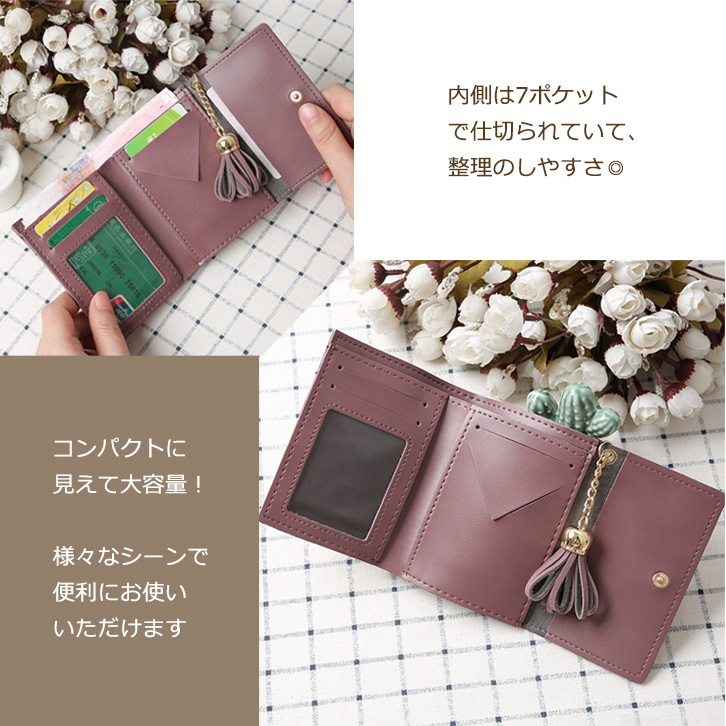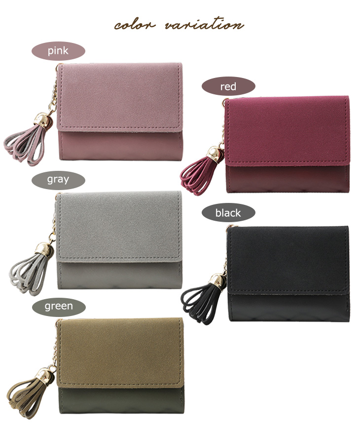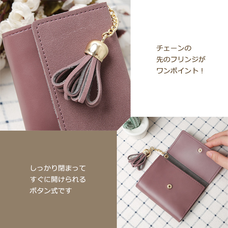 カードケース フリンジ ボタン開閉 ボタン式 シンプル 可愛い コンパクト 大容量 内側7ポケット 全5色 PUレザー ピンク グレー グリーン レッド ブラック おしゃれ カラー豊富 カラバリ豊富