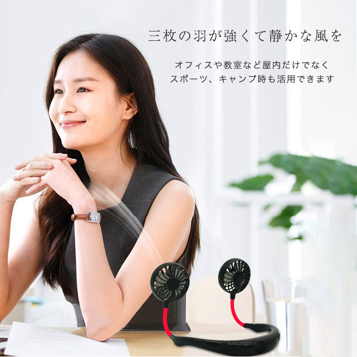 首かけハンディファン ハンディファン 首かけ 両手フリー 両手開放 超軽量 肩にかけるだけ 操作簡単 シリコンアーム 置き型ファン ミニファン オフィス スポーツ キャンプ アウトドア USB充電