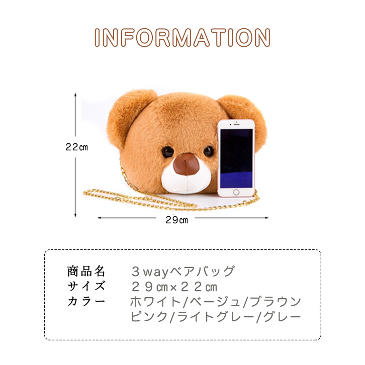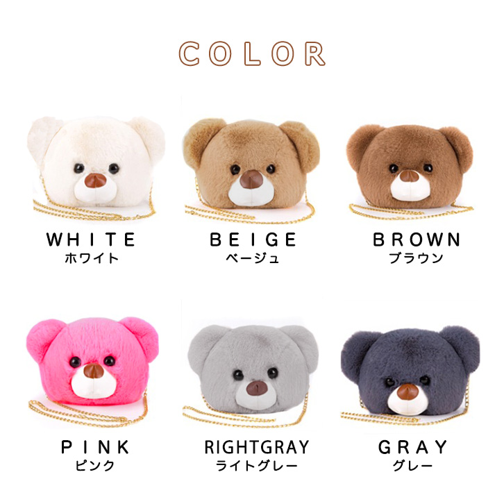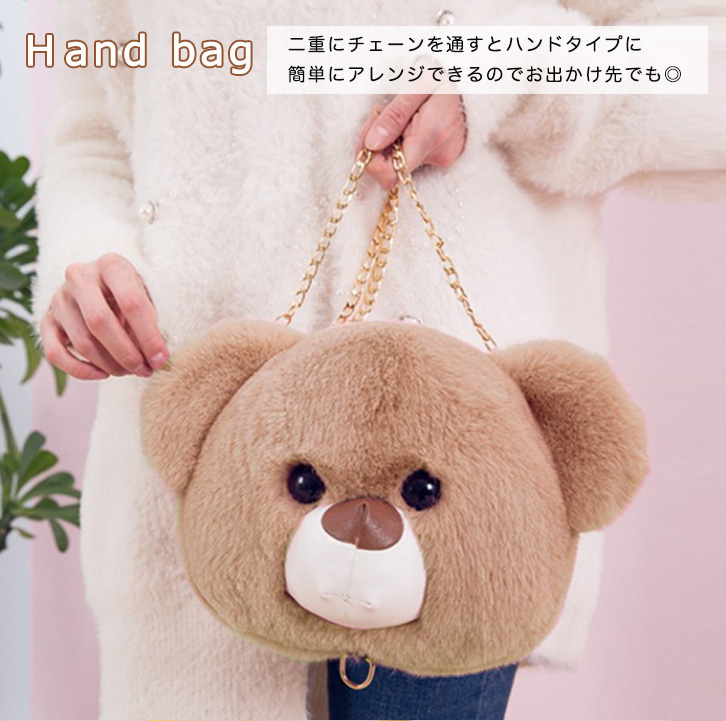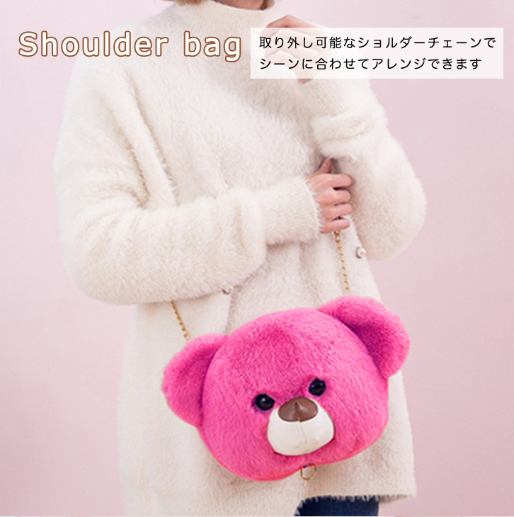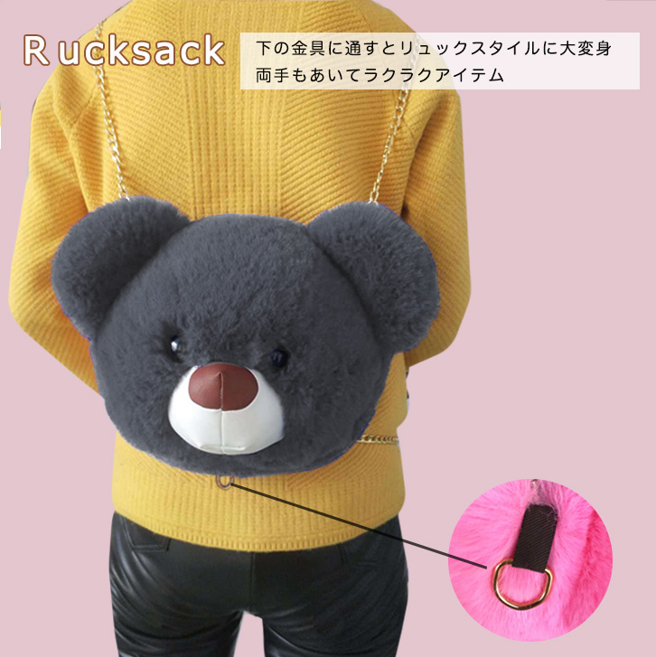 バッグ ベアーバッグ くま ショルダーバッグ ハンドバッグ リュック 3wayバッグ バックパック かわいい 収納力抜群 ファスナー開閉 キュート ショルダーチェーン もこもこ ふわふわ 全6色