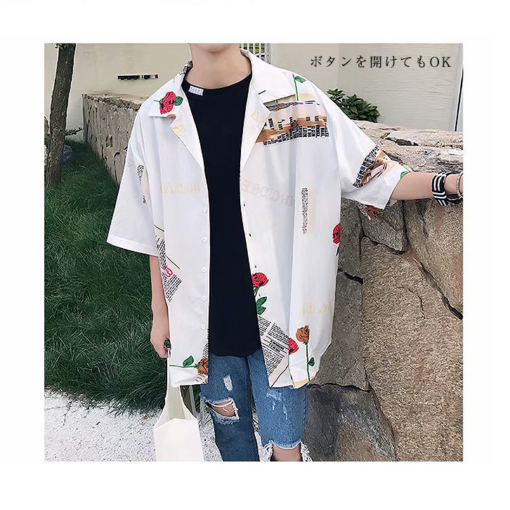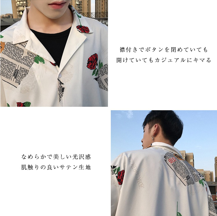 メンズシャツ 柄シャツ 柄 オシャレ 襟付き カジュアル サテン生地 肌触り抜群 着心地抜群 光沢感 ゆったり 1枚で決まる 羽織り カジュアルシャツ メンズ 男性 開襟シャツ トップス