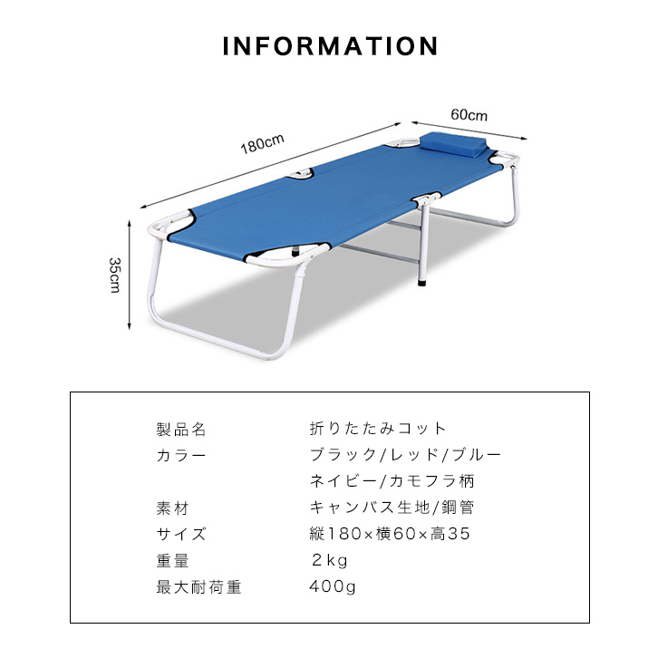 折り畳みコット フォールディングベッド ット キャンプ 簡易ベッド アウトドア用品 レジャー用品 折りたたみ式ベッド アウトドアベッド キャンプ用品 寝具 折り畳み