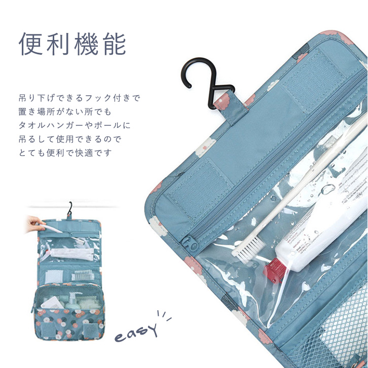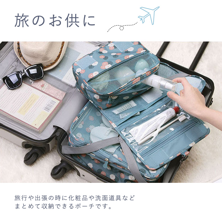 トラベルポーチ 吊るして使える ファブリックトラベルポーチ ハンギングポーチ 旅行用ポーチ 収納ポーチ メッシュポーチ 出張 旅行 修学旅行 卒業旅行 旅行カバン バッグ