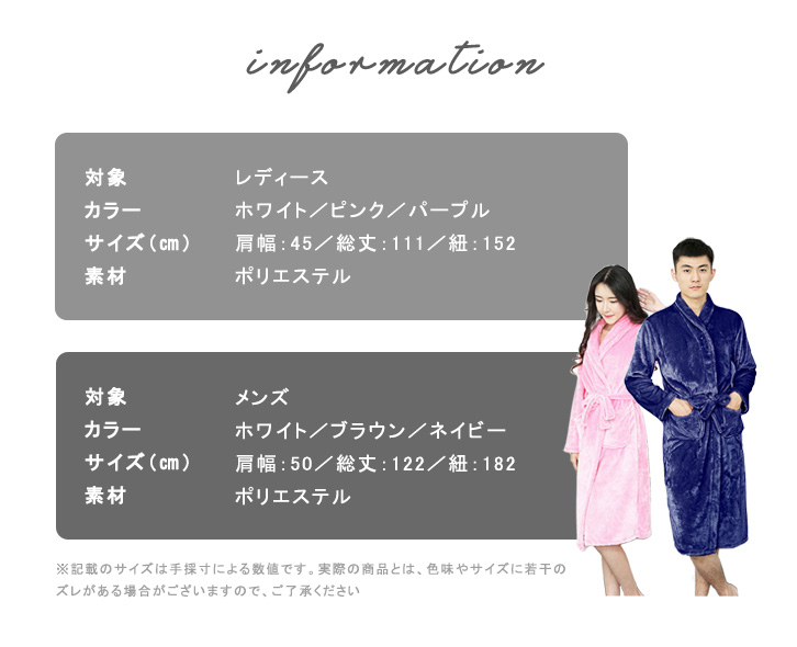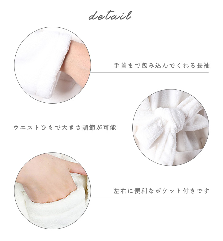 秋から冬、春には湯冷めを防ぎ、夏はシャワー後の汗を吸汗し