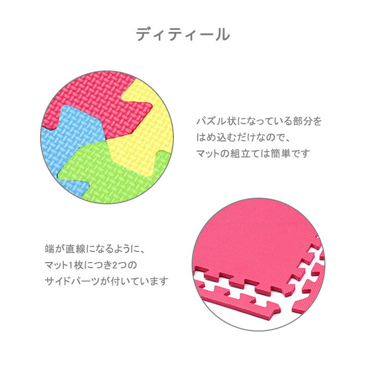 ジョイントマット マット フロアマット リビング パズルマット プレイマット クッション性抜群 パズル状 組み立て簡単 4枚組 EVA素材 吸収 騒音 防音 クッションマット ベビーマット サイドパーツ付き
