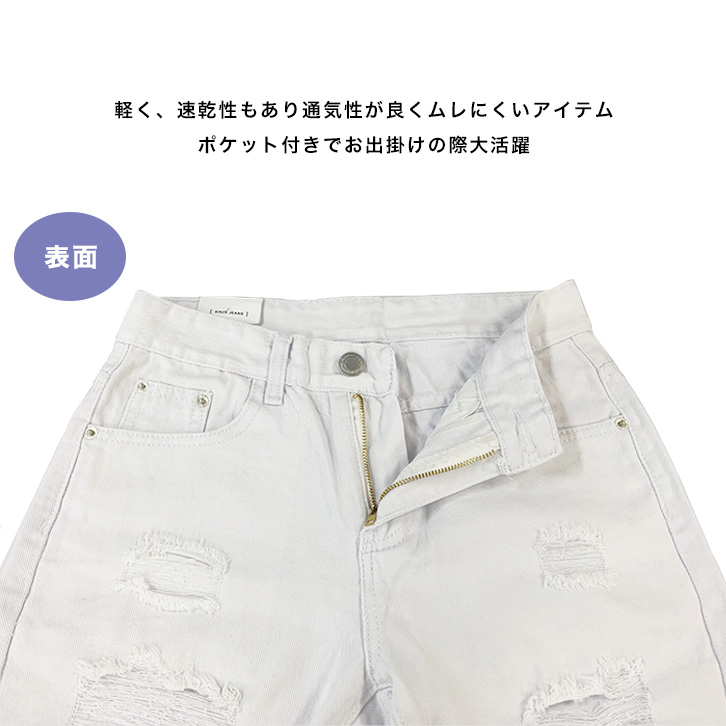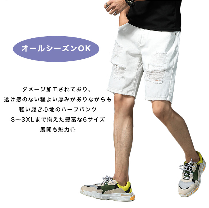 クラッシュ デニム ショーツ ハーフパンツ メンズ ハーフパンツ 白 ホワイト メンズ ダメージ加工 デニムショーツ 短パン ハーフパンツ デニム ショーツ 半ズボン 夏物 夏服 メンズファッション カジュアルパンツ