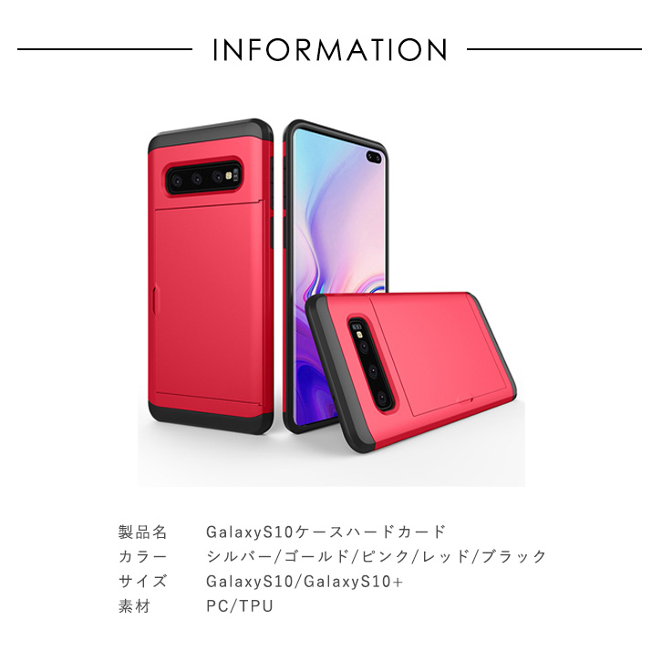 Galaxy S10 Galaxy S10+ スマホケース ケース 耐衝撃 衝撃 吸収 背面 カード ホルダー 2枚 収納 サムスン ギャラクシー ハイブリッド カバー 衝撃に強い 対衝撃 カードケース 付き