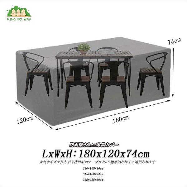 【サイズ:】180x120x74cm。大判サイズで長方形や楕円形のテーブルと6つ標準的な椅子に適用されて雪、雨、晴れの日に動物の糞/樹液/汚れなどから保護を与えられる生活の必需品。