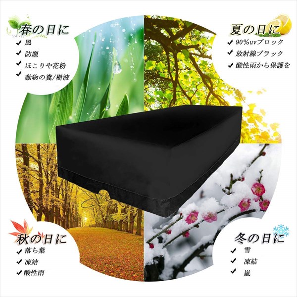 【防水性&耐久性:】ポリエステル+ PVCコーティング製。屋内と屋外通用ファニチャーカバーで厚い生地で防水性はもちろん、家具を傷りやすい日照りをブロックすることもできます、あなたのファニチャーをキッチリ守ります。