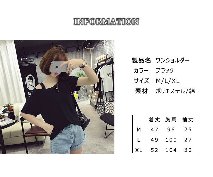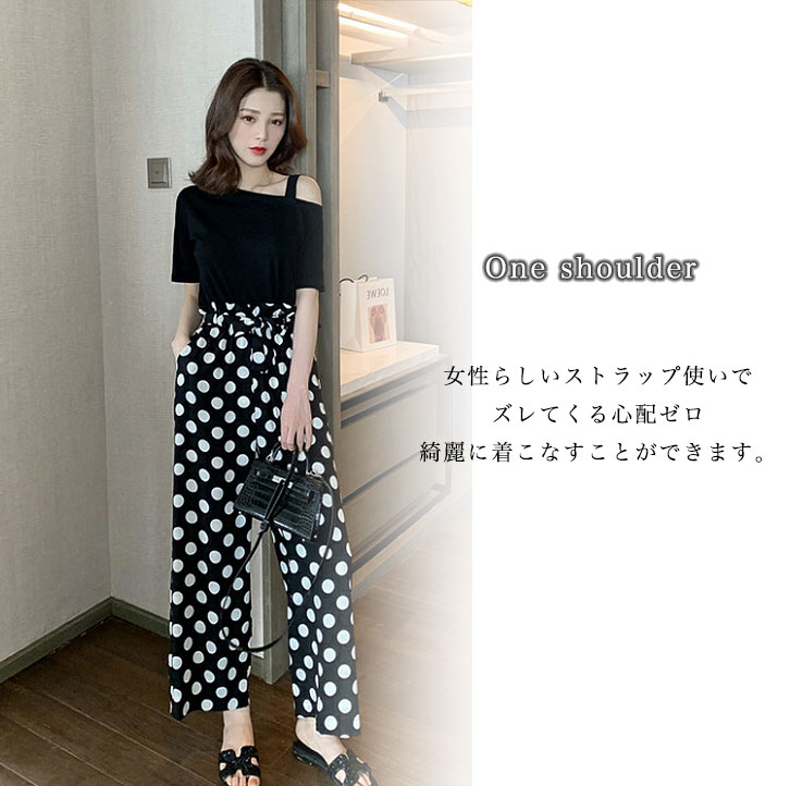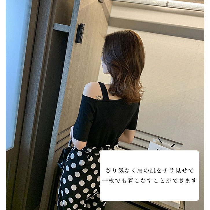 ワンショルダー トップス 肩出し チラ見せ レディース 半袖 夏 デコルテ オシャレ カジュアル かわいい セクシー ブラック ストラップ使い キレイめ 大人かわいい 無地 合わせやすい