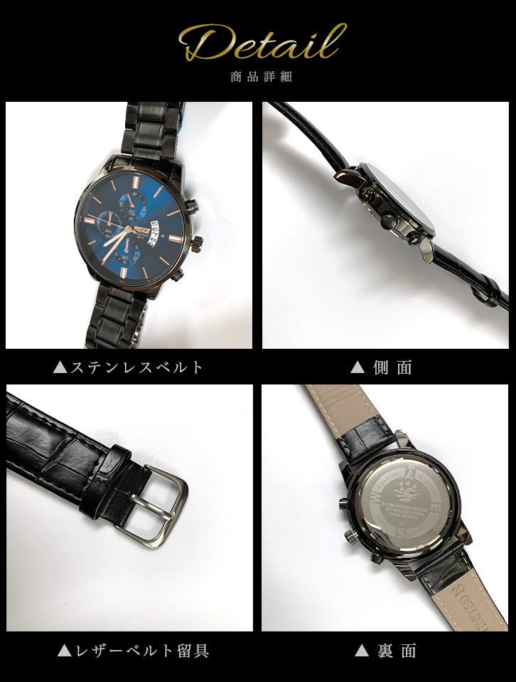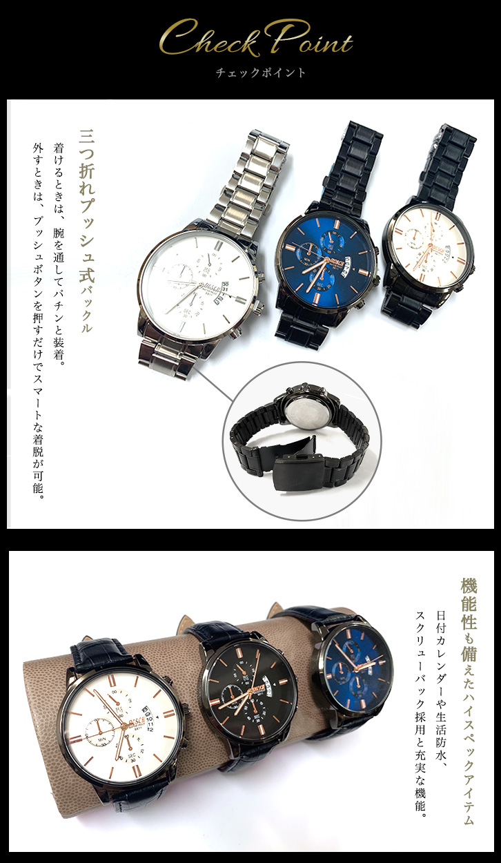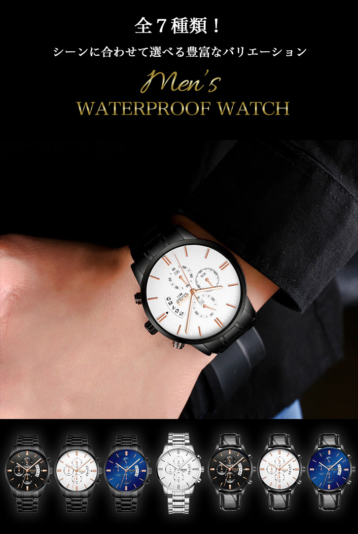 腕時計 メンズ腕時計 メンズウォッチ 男性 メンズ 防水腕時計 ウォータープルーフ かっこいい シンプル 三つ折れプッシュ式 日付カレンダー 機能性抜群 シンプル 高級感 レザーベルトタイプ