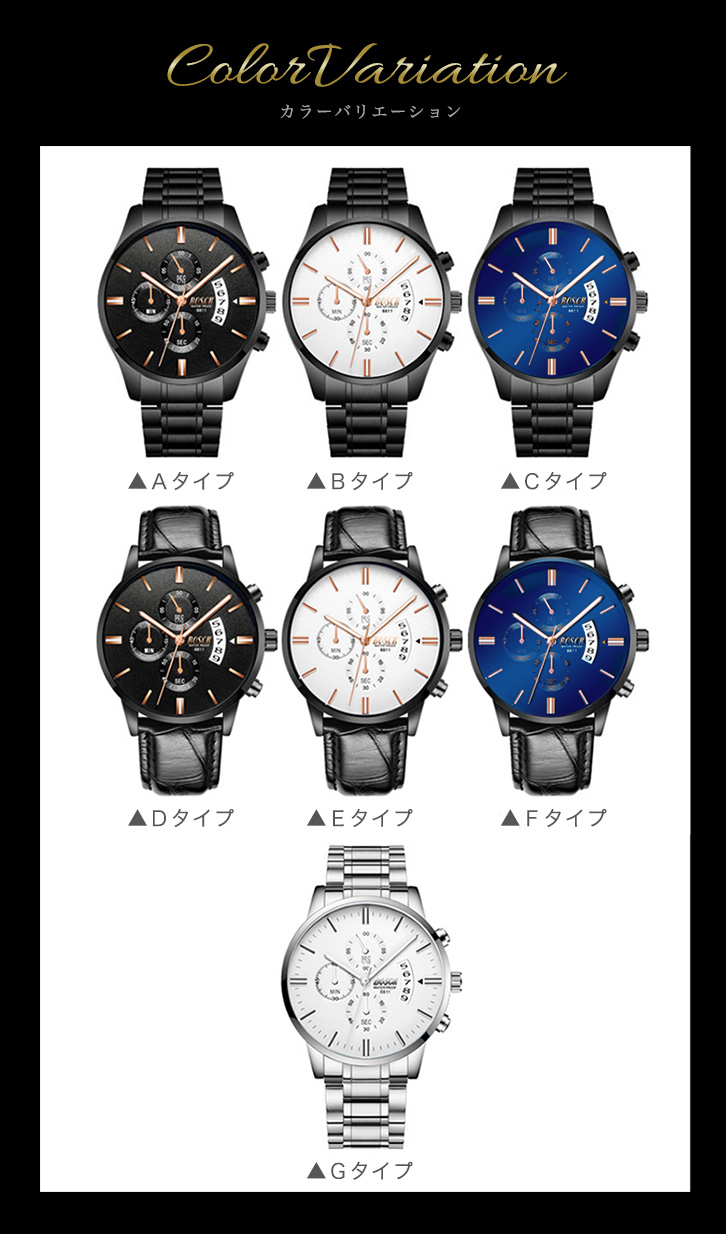 ベルト/ステンレス鋼(A,B,C,G)合皮レザー(D,E,F)