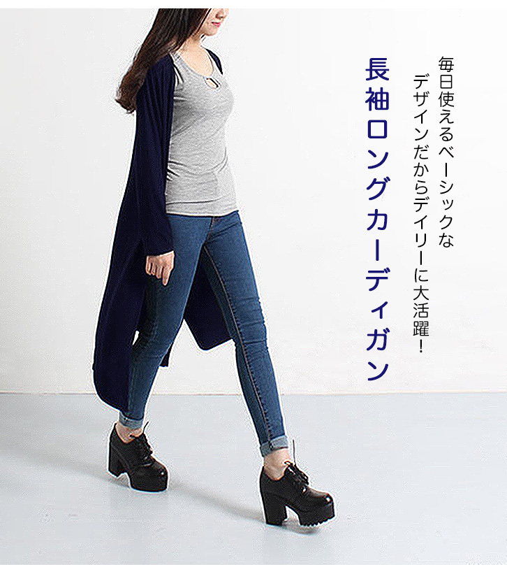 ロングカーディガン カーディガン カーデ ロング丈 シンプル 長袖 デイリー使い シンプル 合わせやすい 着回し力抜群 伸縮性抜群 着心地快適 全4色 淡グレー 濃グレー レッド ネイビー