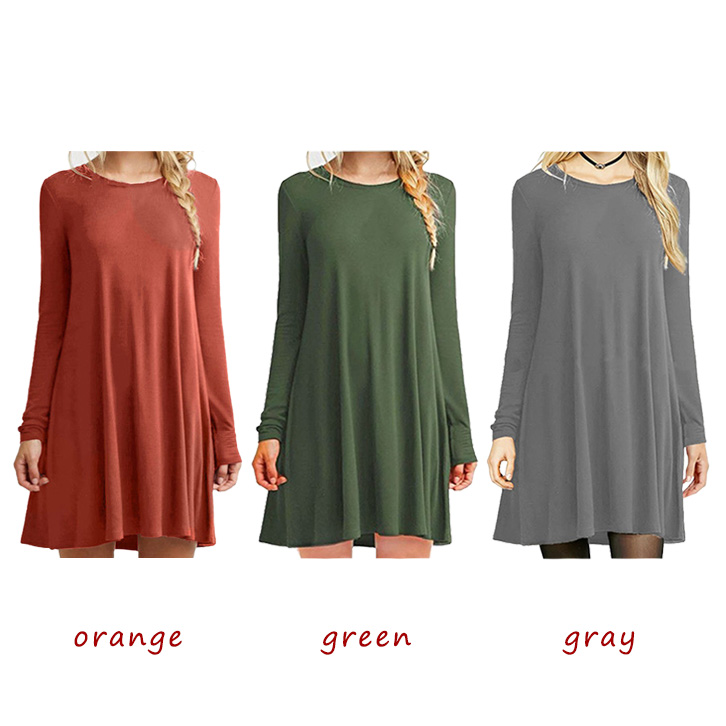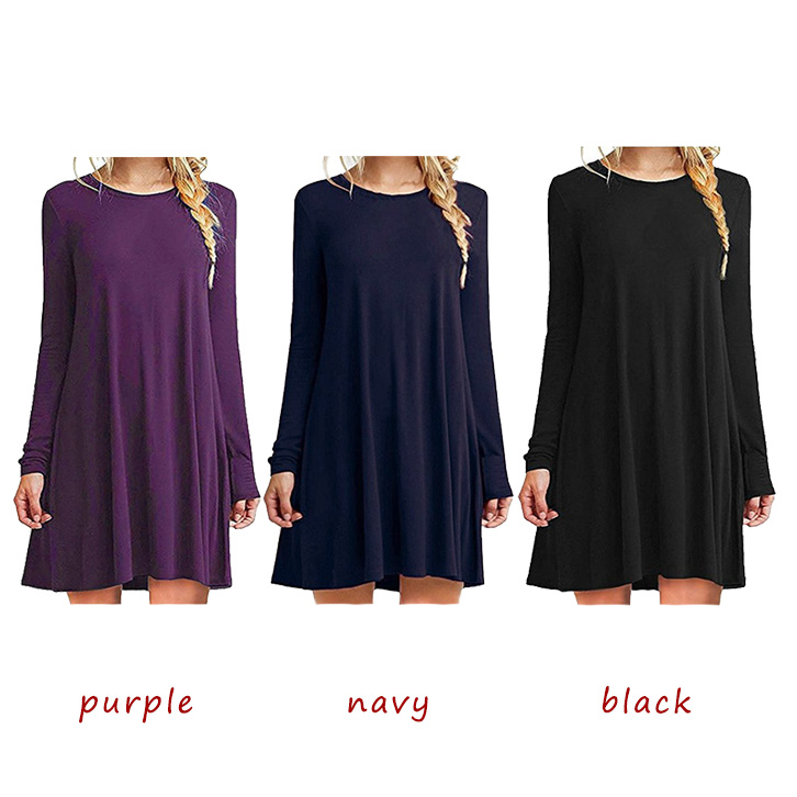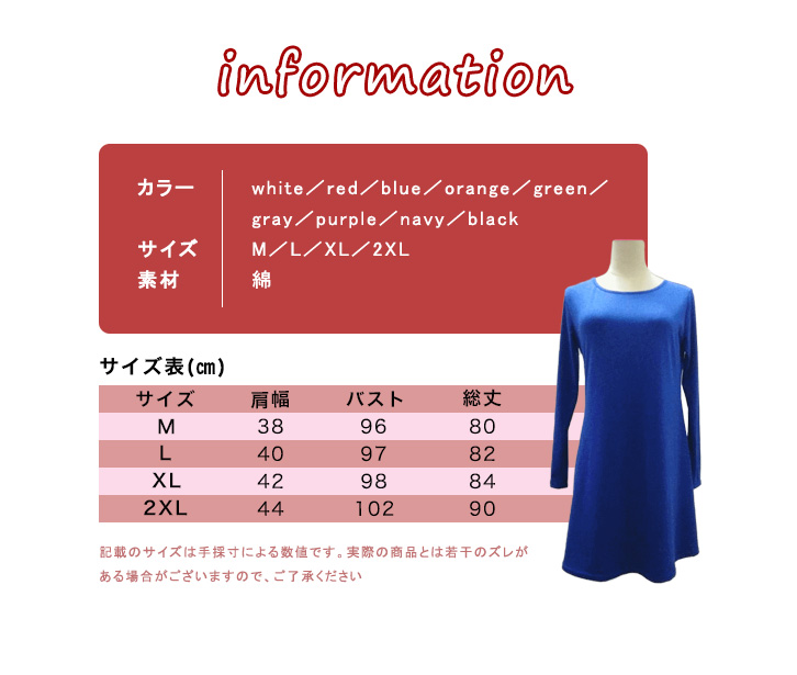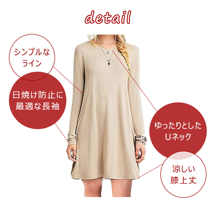 ワンピース 無地 着心地抜群 らくちん シンプル 日焼け防止 長袖 Uネック 膝上丈 カラバリ豊富 カラー豊富 全9色 ルームウェア デイリー使い