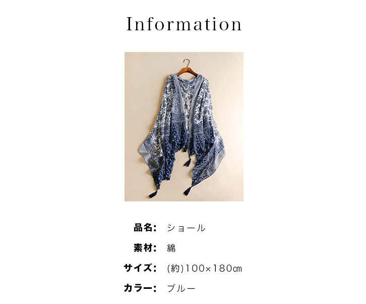 ショール レディースショール エレガント ワンポイントおしゃれ 肌触り抜群 着心地抜群 さらさら 日焼け対策 紫外線対策 冷房対策 オシャレ 大人可愛い ブルー きれいめコーデ 綿素材