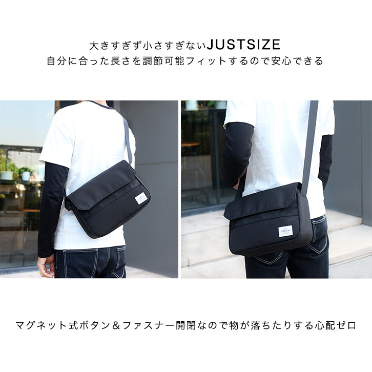 メッセンジャーバッグ メンズ ショルダーバッグ 肩掛けバッグ 撥水性 耐久性 ナイロン素材 丈夫 収納ポケット多数 ショルダー紐調節可能 マグネット式ボタン ファスナー開閉 ブラック
