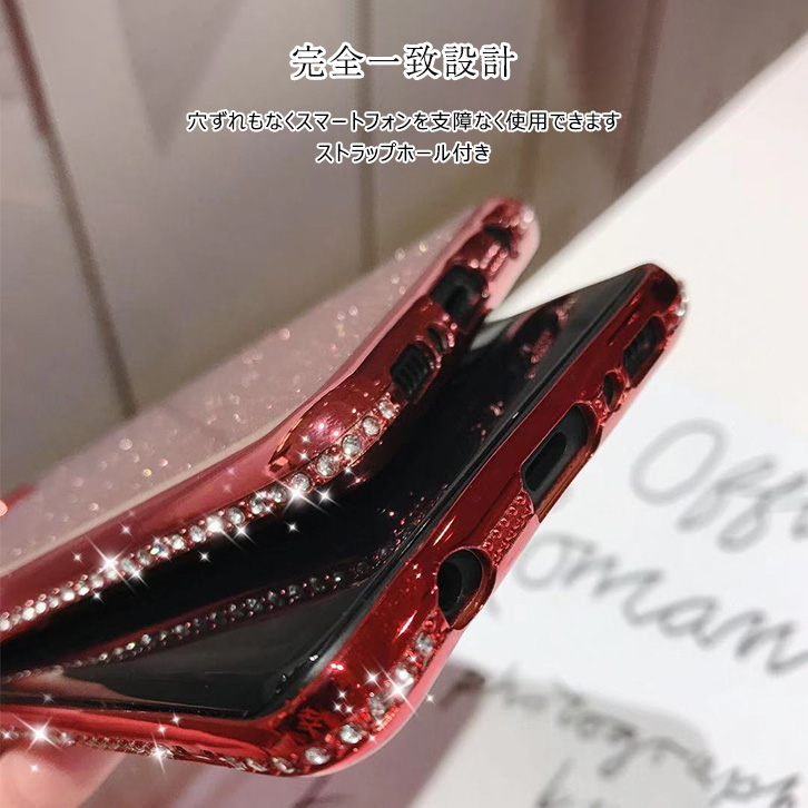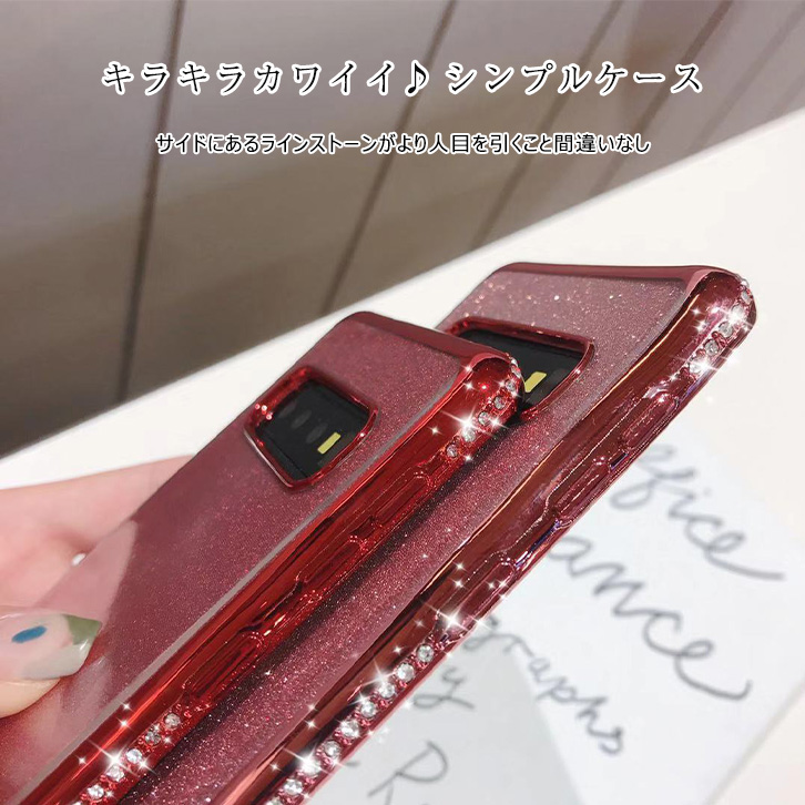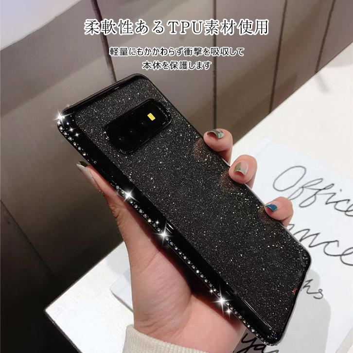 Galaxyケース Galaxyカバー スマホ ケース カバー ラメ キラキラ サイドストーン かわいい オシャレ TPU素材 軽量 耐衝撃 ストラップホール付き ラメシート着脱可能 クリアケース 全4カラー