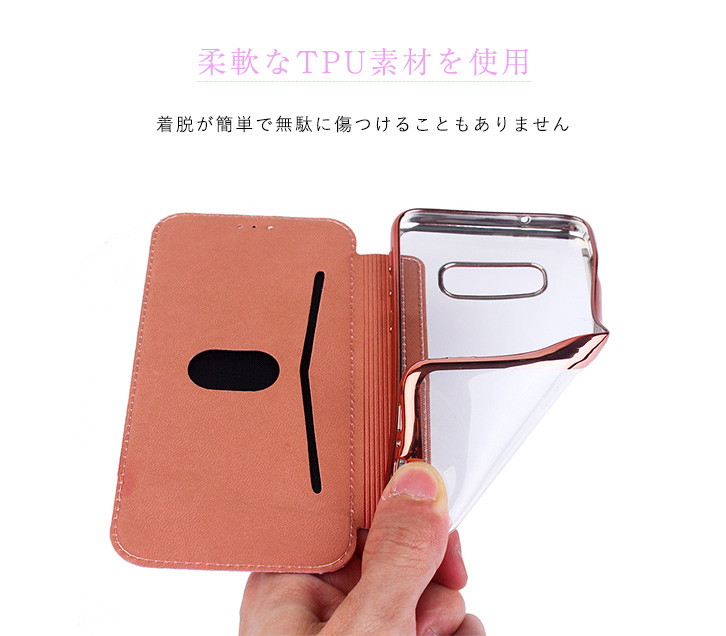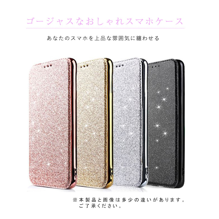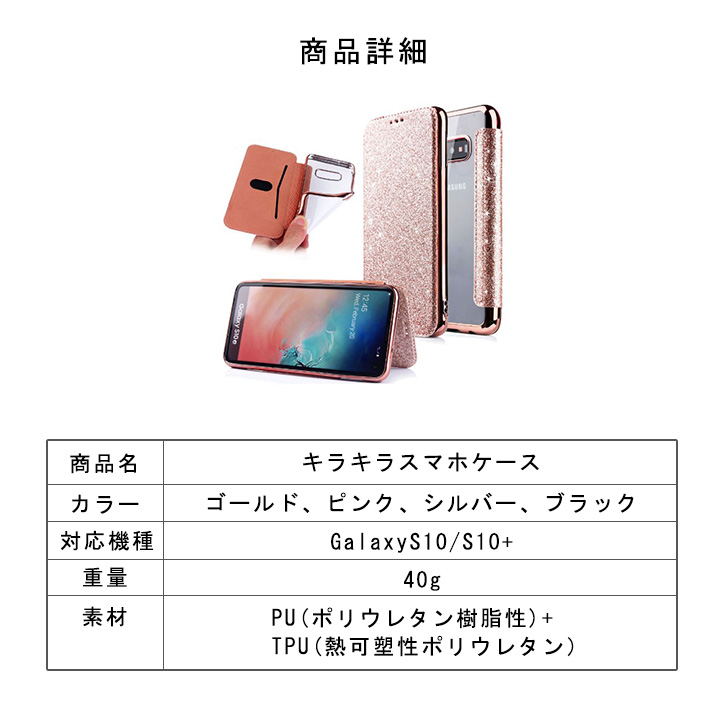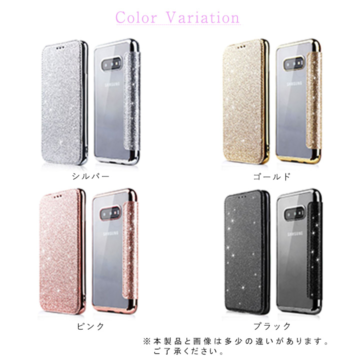 Galaxyケース Galaxyカバー スマホ ケース カバー キラキラ 手帳型 クリアケース 全4色 ゴージャス 上品 360度フルカバー保護 TPU素材 着脱簡単 カード収納ポケット付き 定期券入れ ICカード入れ シルバー ゴールド ピンク ブラック