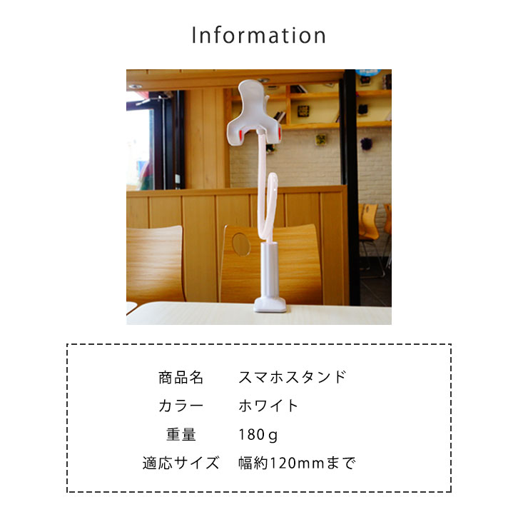 スタンド スマホスタンド 曲がる ぐねぐね 他機種対応 アームスタンド 楽ちん カンタン設置 360度回転 ホワイト デスク固定 iPhone対応 iPhone Xperia Android 寝ながら シンプル 卓上アームスタンド 卓上